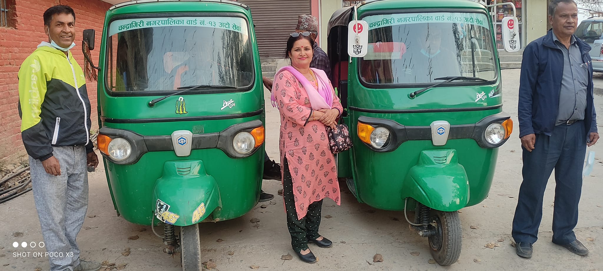 चन्द्रागिरि नगरपालिका वडा नं. १३ को कार्यालयले अटो (टेम्पो) सेवा सुरू गरेको छ । वडा कार्यालयबाट जारी विज्ञप्तीका अनुसार चैत्र ६ गतेको निर्णयानुसार सो सेवा सोमबारबाट सुरू भएको हो ।