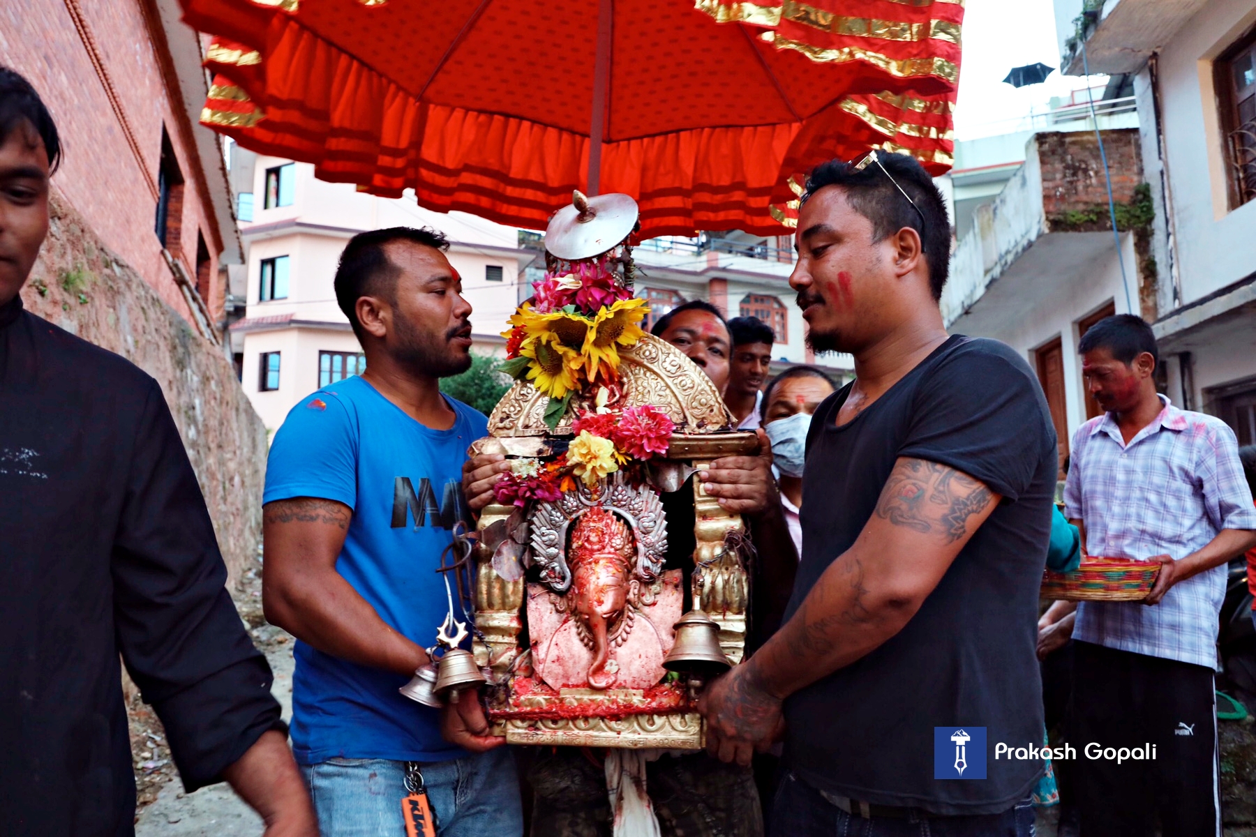 काठमाण्डाैका प्राचीन नेवाः बस्तीहरू मध्येको एक थानकोटमा गाईजात्रा पर्वको अघिल्लो दिन (क्वाति पुन्हिका दिन) वर्षेनी गरिने गणेश पूजा सम्पन्न भएको छ ।