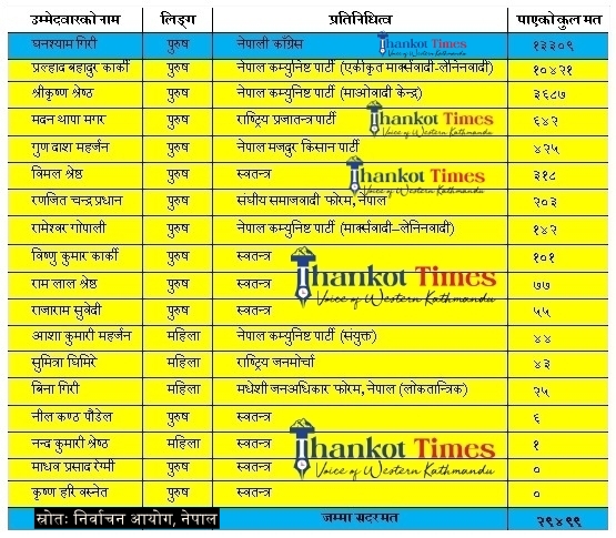 चन्द्रागिरि नगरमा घनश्याम गिरीले १३ हजार ३ सय भोट ल्याउँदा कुन दलले कति पाएका थिए ?