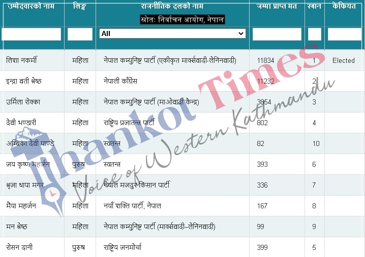 फर्केर हेर्दा २०७४ को स्थानीय चुनावः उपमेयरमा लिशा नकर्मीलाई ४० प्रतिशत मत