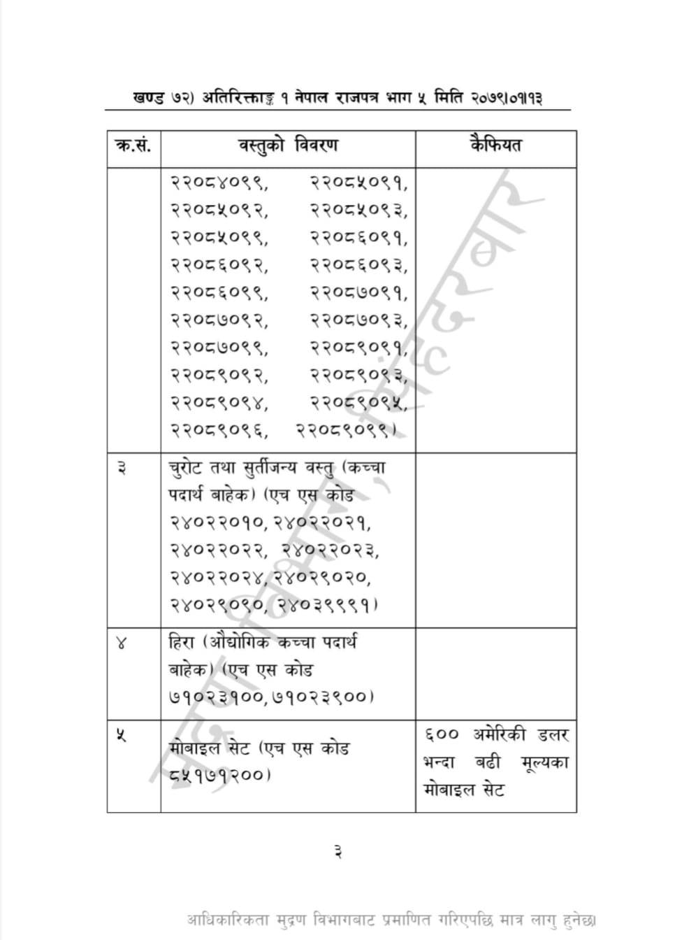 ४. हिरा (औद्योगिक कच्चा पदार्थ ल्याउन छुट)