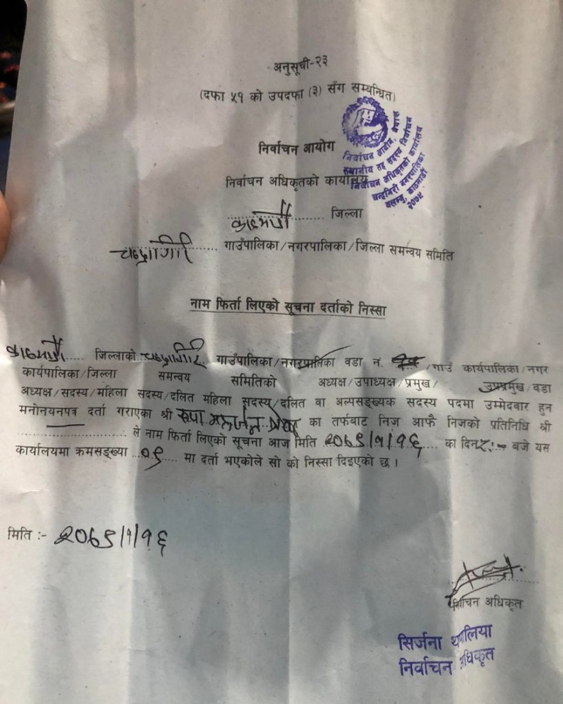 स्थानीय तह निर्वाचन: चन्द्रागिरि नगरमा माओवादी केन्द्रका मेयर उपमेयरले नाम फिर्ता लिए