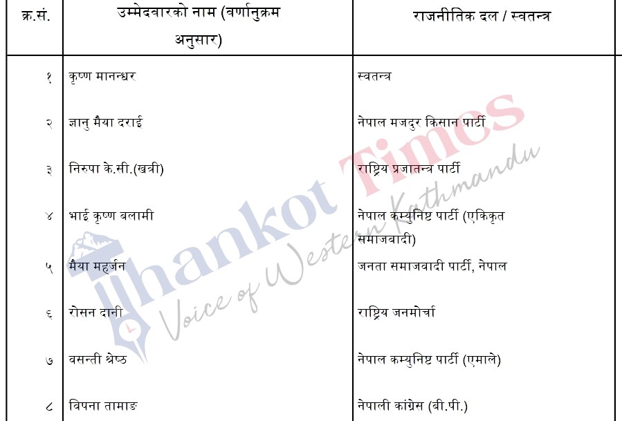 चन्द्रागिरि नगरपालिकाको उपमेयर बन्न उम्मेदवारी दिएका उम्मेदवारहरूः