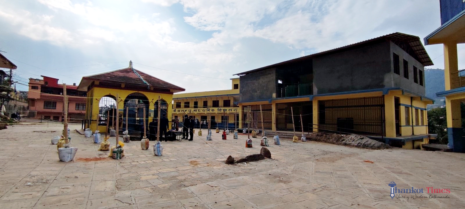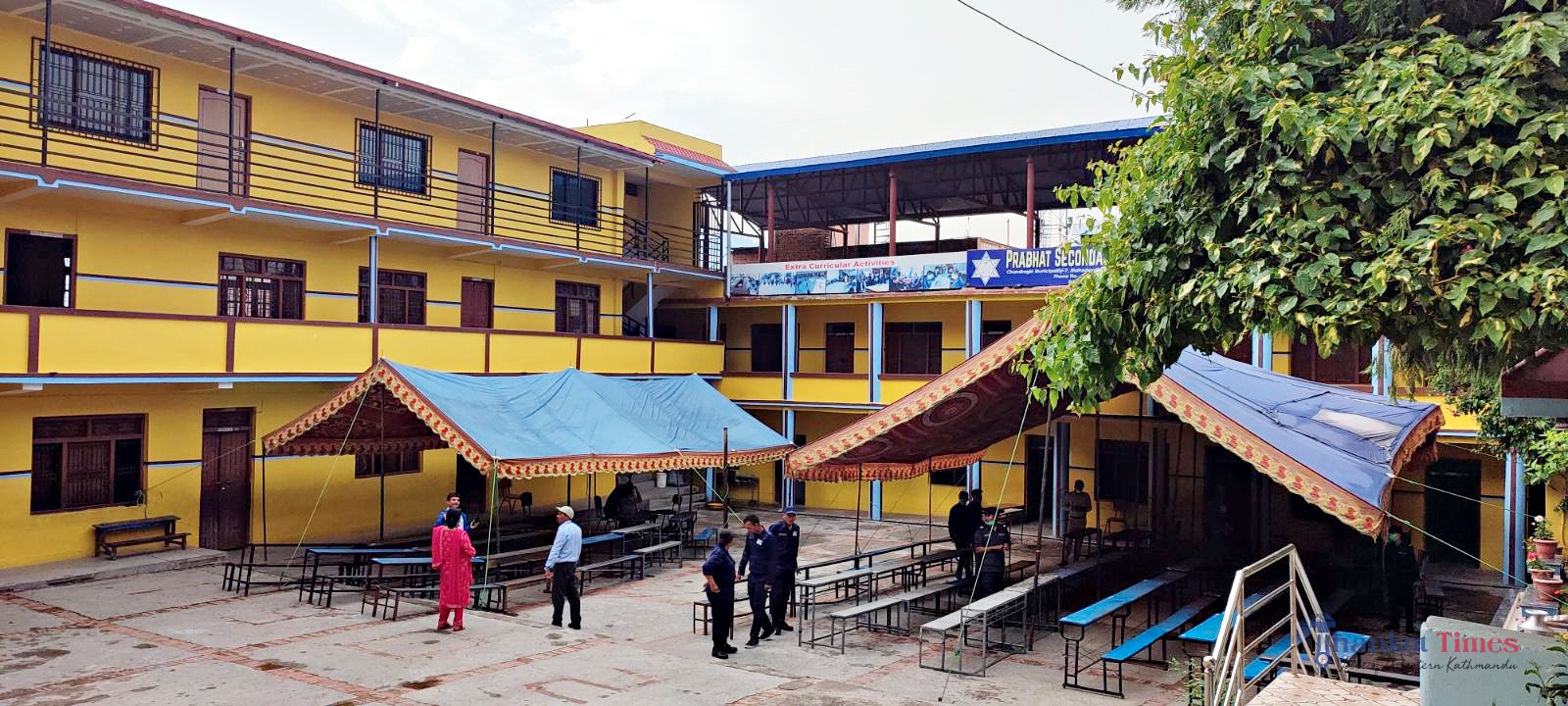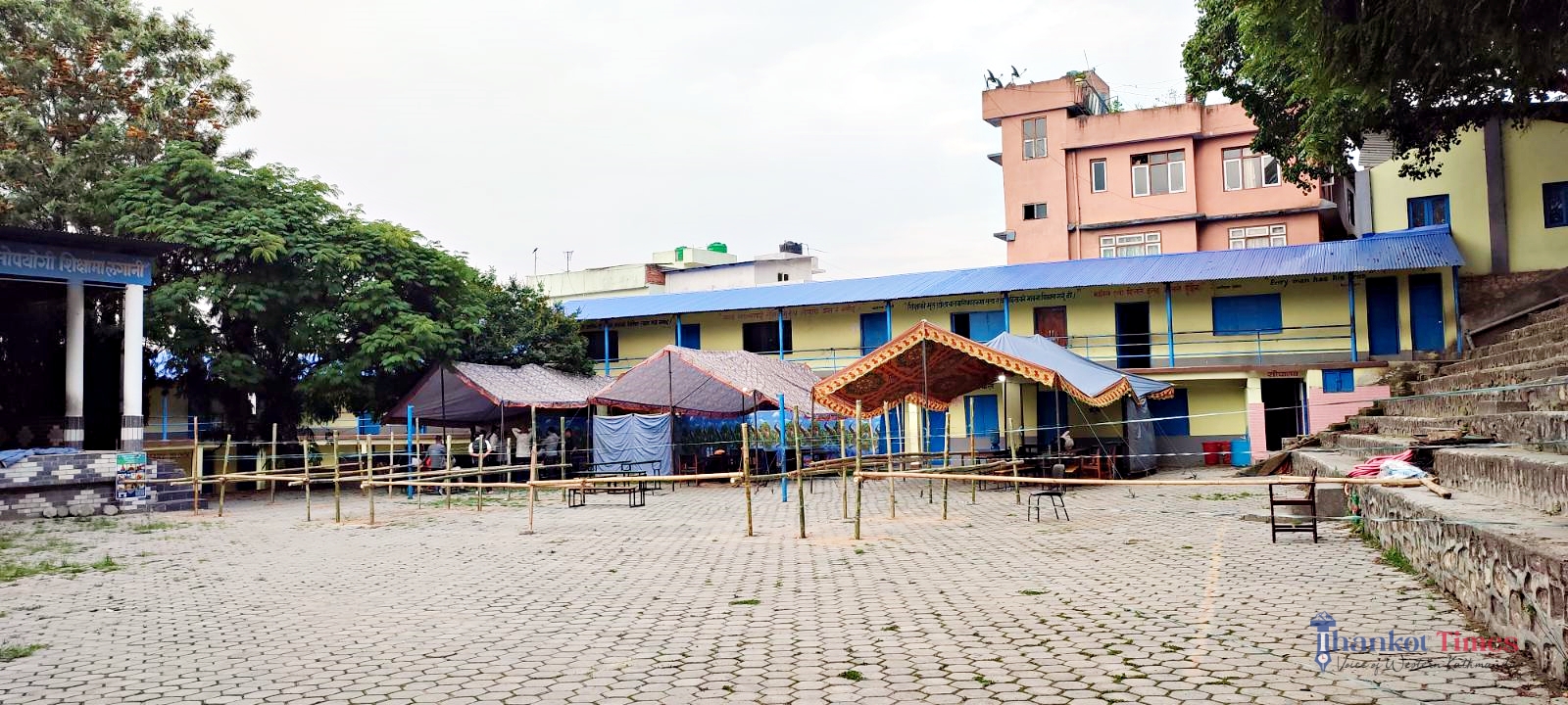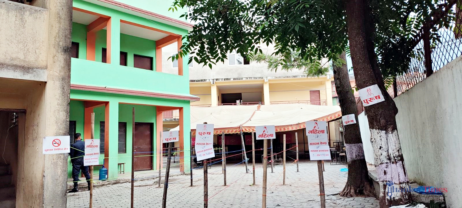 मतदानका दिन पानी पर्न सक्ने सम्भावना देखिएपछि नगरका अधिकांश मतदान स्थलमा त्रिपाल हालिएको छ ।