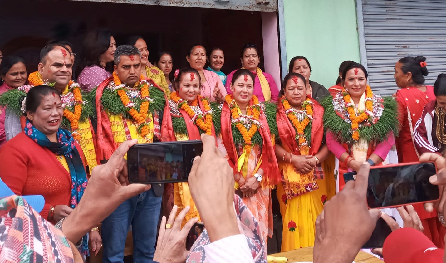 दोश्रो कार्यकालका लागि पुनः निर्वाचित भएका चार वटै वडामा सम्बन्धित उम्मेवारको प्यानल नै विजयी भएको छ ।
