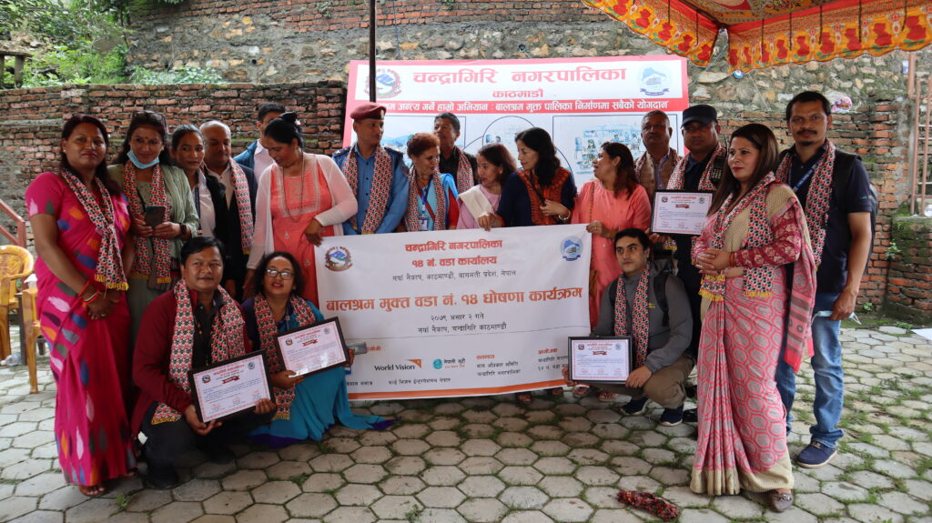 चन्द्रागिरि १४ नयाँ नैकाप बन्यो काठमाण्डाै जिल्लाकै पहिलो बालश्रम मुक्त वडा
