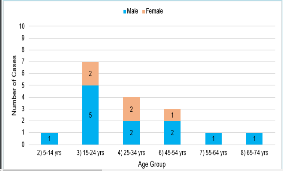 हैजा संक्रमित हुनेमा १५ देखि ३४ वर्षसम्मका ११ युवा छन् । पाँच वर्षमुनिका शिशुमा संक्रमण देखिएको छैन्।