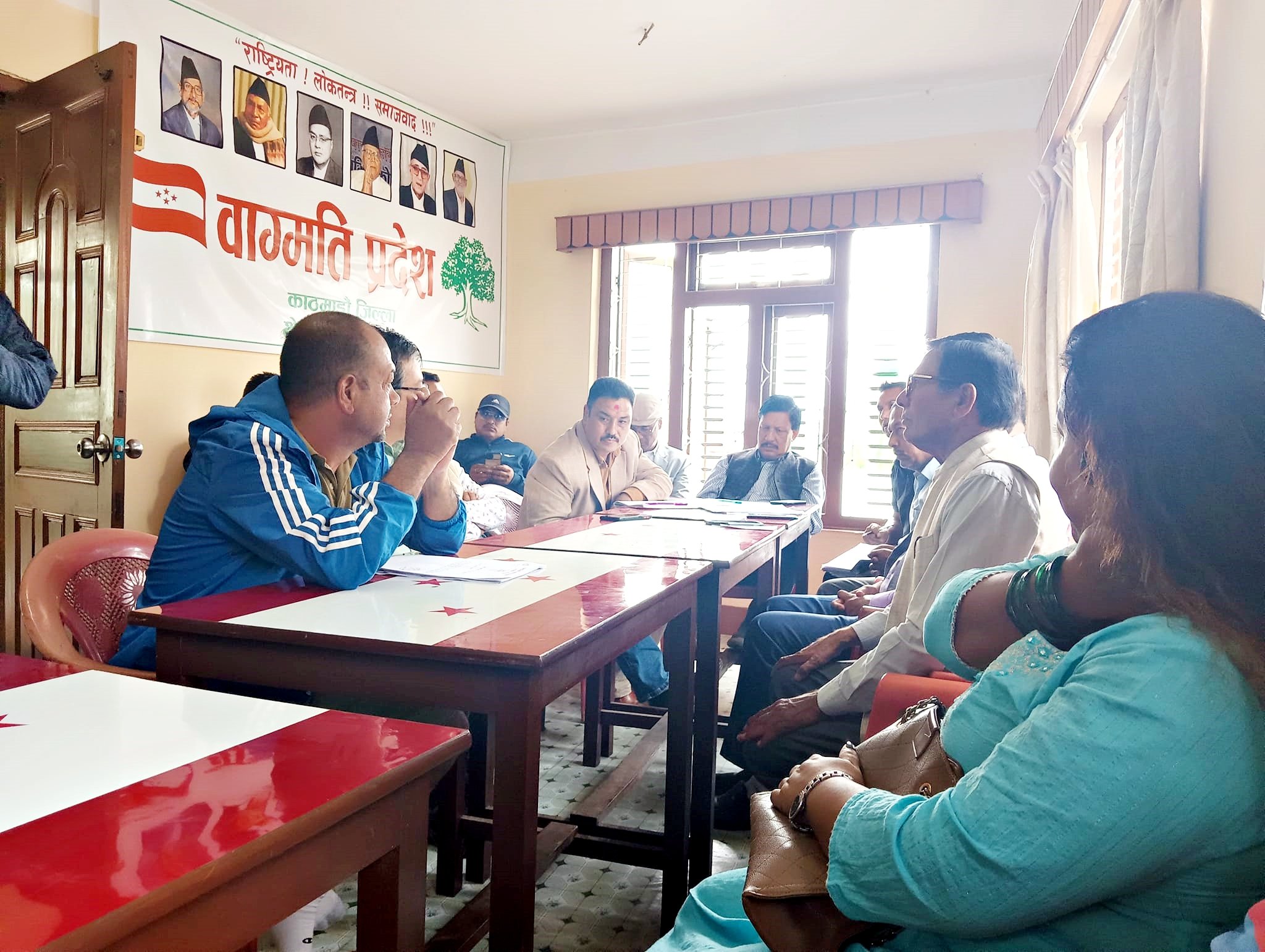 शनिबार नेपाली काँग्रेस काठमाण्डाै क्षेत्र नं. १० का संघीय सांसद् राजेन्द्र कुमार केसीको उपस्थितिमा सो दलको क्षेत्र नं. १० ख को कार्यालयमा दलका क्षेत्रीय नेताहरूसहितको छलफल कार्यक्रम राखिएको बताइएको छ ।