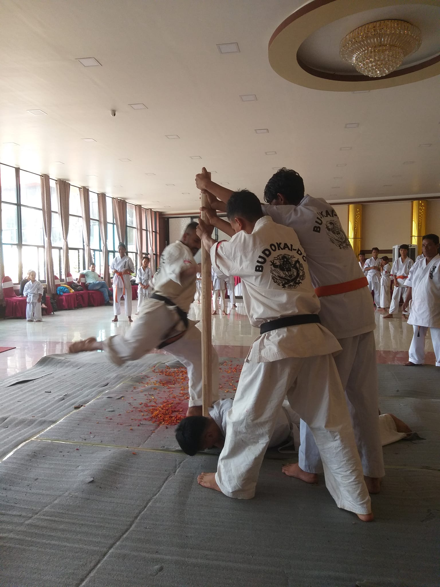 सो क्रममा थानकोट बुदोकै-दो शाखाका प्रशिक्षक तथा खेलाडीहरू वीरचन्द्र नकर्मी, रोजन गोपाली, मन्दिप गोपाली तथा लक्ष्मण श्रेष्ठले स्टीक (लठ्ठी) ब्रेकिङ, घैटो ब्रेकिङ, टायल ब्रेकिङ तथा पेटमा ढुङ्गा ब्रेकिङको डेमोस्ट्रेशन देखाएका थिए ।