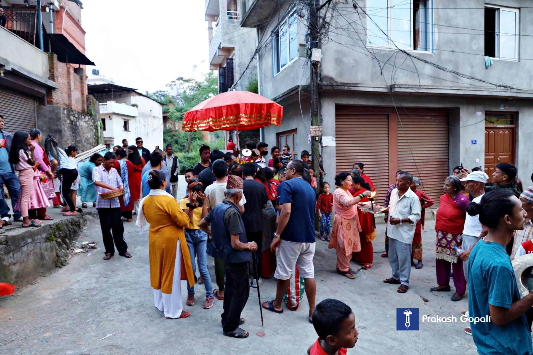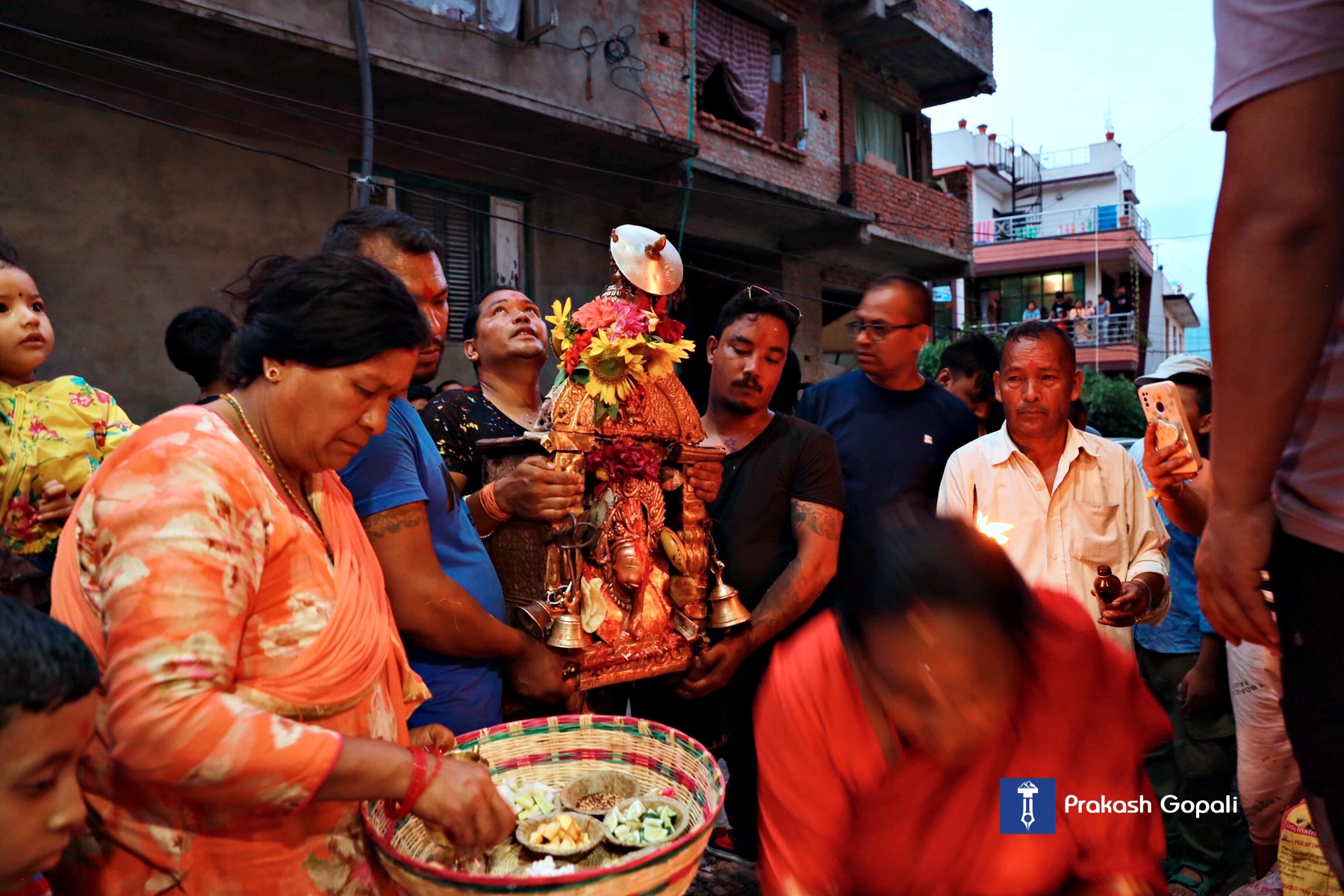 काठमाण्डाैका प्राचीन नेवाः बस्तीहरू मध्येको एक थानकोटमा गाईजात्रा पर्वको अघिल्लो दिन (क्वाति पुन्हिका दिन) वर्षेनी गरिने गणेश पूजा सम्पन्न भएको छ ।
