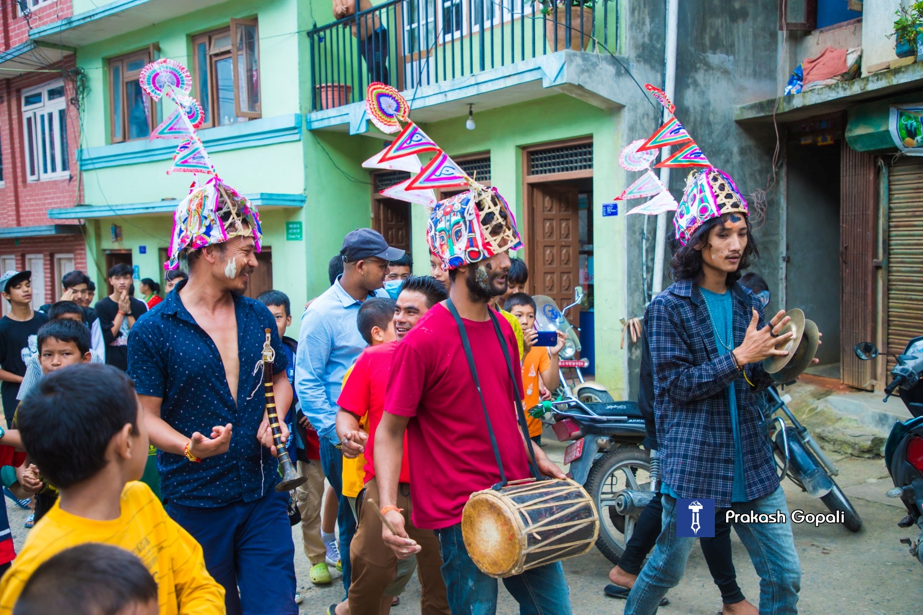 उक्त टाउको लुकाउने जात्राको शुभारम्भ गाईजात्राको झाँकी (दिवङ्गत आत्माको चिरशान्तिका लागि गाई र जोगीको भेषमा सिंगारिएका बालक) प्रदर्शन देवस्थलको साथै नगरपरिक्रमा गरी सम्पन्न भएपछि साँझपख नाय्खिं च्वय्किगु (उहिले नेवार समुदायमा विशेष सार्वजनिक सूचना गर्न पर्दा नाय्खिं बाजा बजाई टोलटोलमा पताःसिं (कटुवाल) ले खबर पुर्याउने चलन जस्तै) गरिन्छ । यसमा स्थानीय खड्गी र कुसुले (कपाली) जातिको साथै अन्य हांस्यव्यङ्ग प्रस्तुत गर्ने व्यक्तिहरूद्वारा यो नाय्खिं च्वय्किगुबाट हास्यव्यङ्ग्यात्मक प्रस्तुतिकासाथ छ्याछिँ तुँ तुँ …. तालमा नाय्खिं बाजा बजाउँदै निश्चित क्षेत्र परिक्रमा गर्दछन् । यही नाय्खिं च्वय्किगुबाट राँगाको टाउको लुकाउने जात्रा शुरू हुन लागेको सङ्केत गर्दै सो जात्रामा उपस्थित हुन निम्तो दिँदै गरिने यो नाय्खिं च्वय्किगु यात्रा हेर्न पनि मान्छेको उत्तिकै उत्सुकतापूर्ण भीड देख्न सकिन्छ । यिनै उत्सुकता र खुसियालीको विश्राम हुँदानहुँदै कोतघरबाट बाजागाजासाथ राँगोको टाउको बोक्ने जात्राको थालनी भइसक्दछ ।