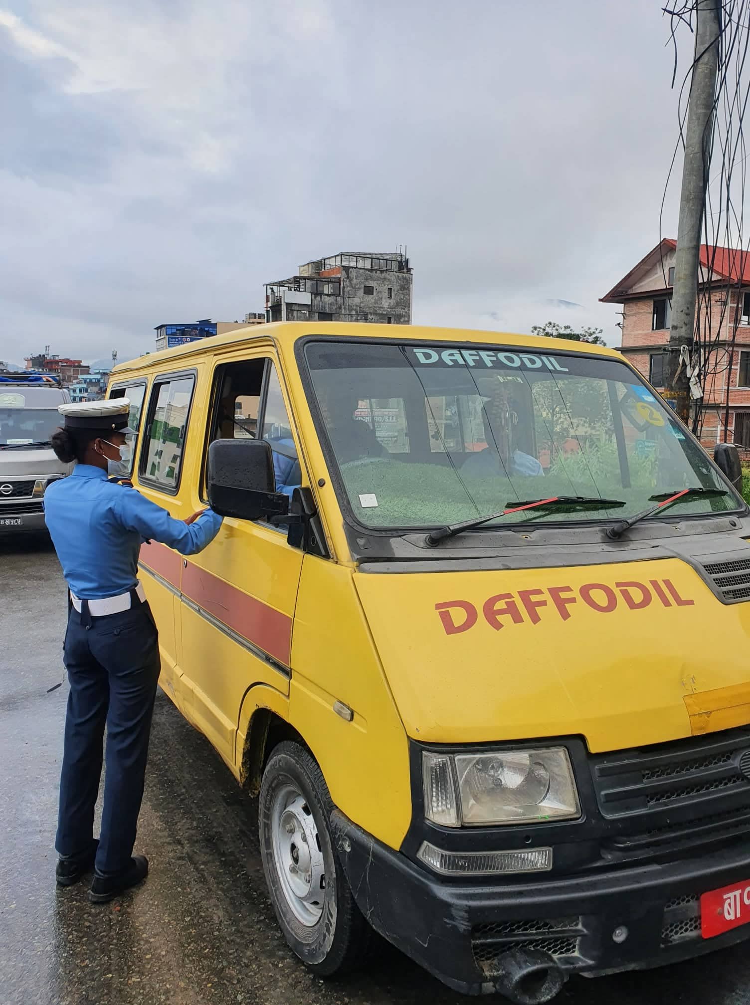 कार्यालयले साउन ८ गतेदेखि स्कुल बस निर्देशिका २०७४ विपरीत ट्राफिक नियम उल्लंघन गर्ने विभिन्न स्कुलका सवारी साधनहरूलाई कारबाही तथा सचेत गराउने अभियान थालेको थियो।