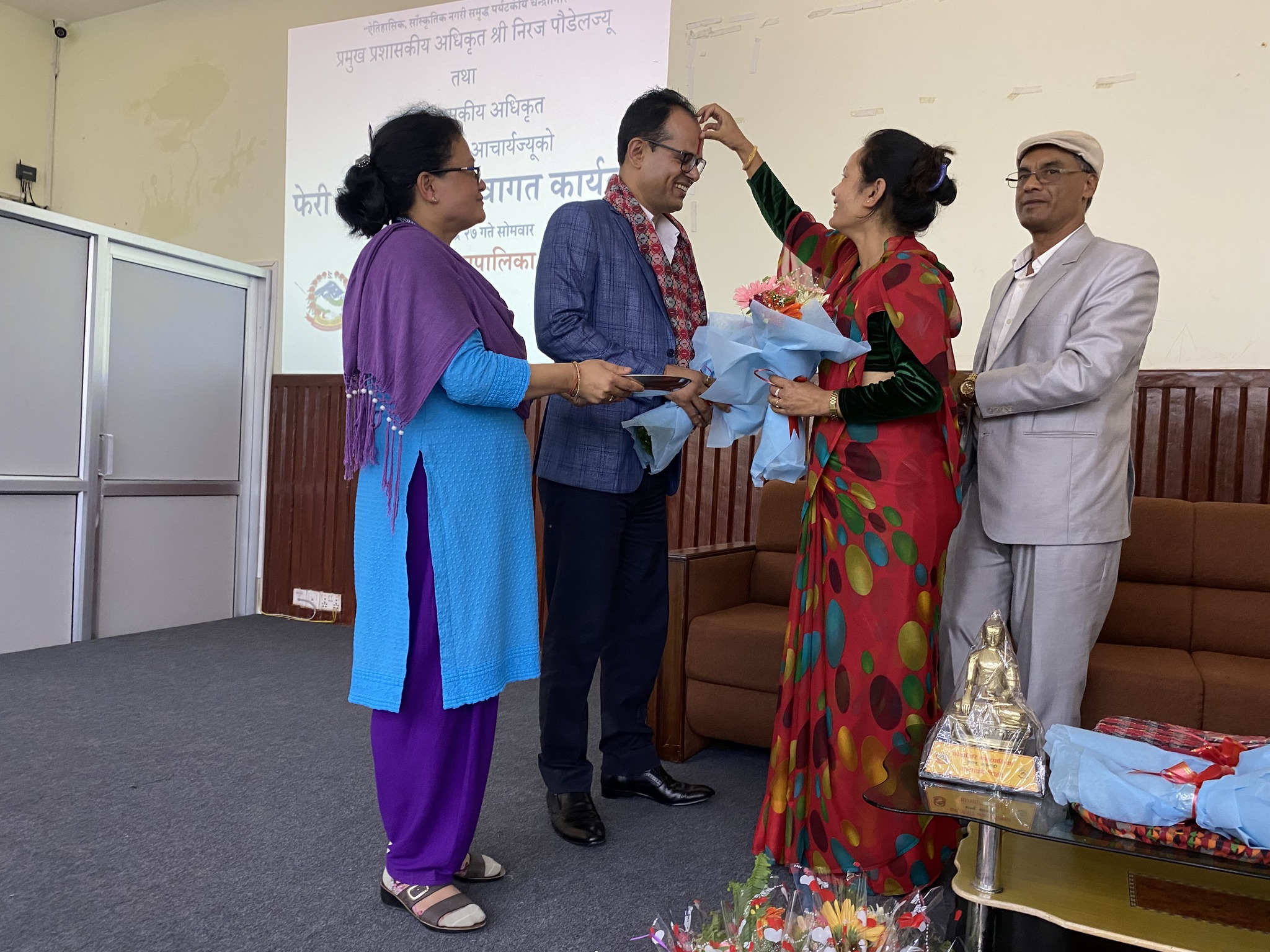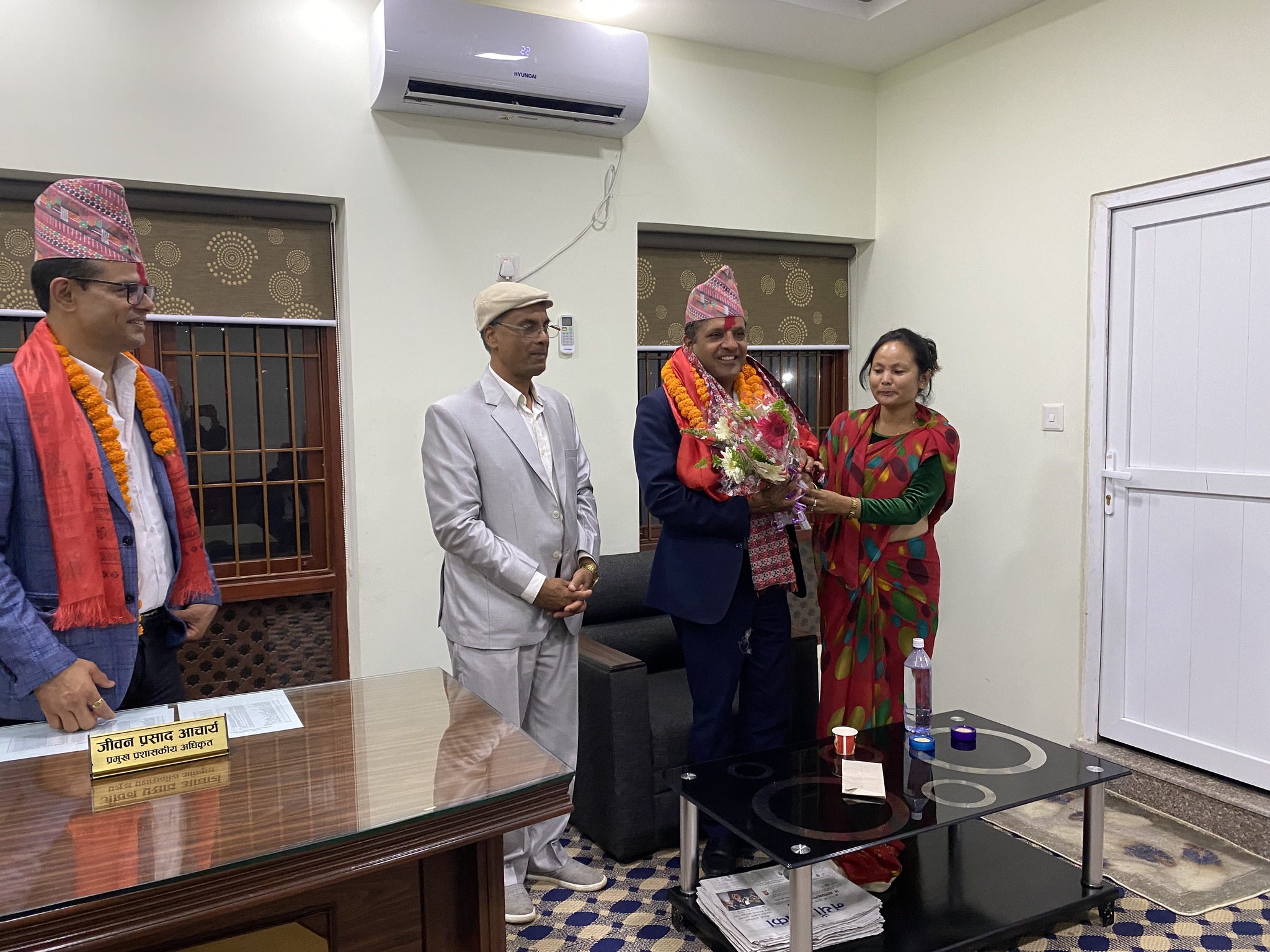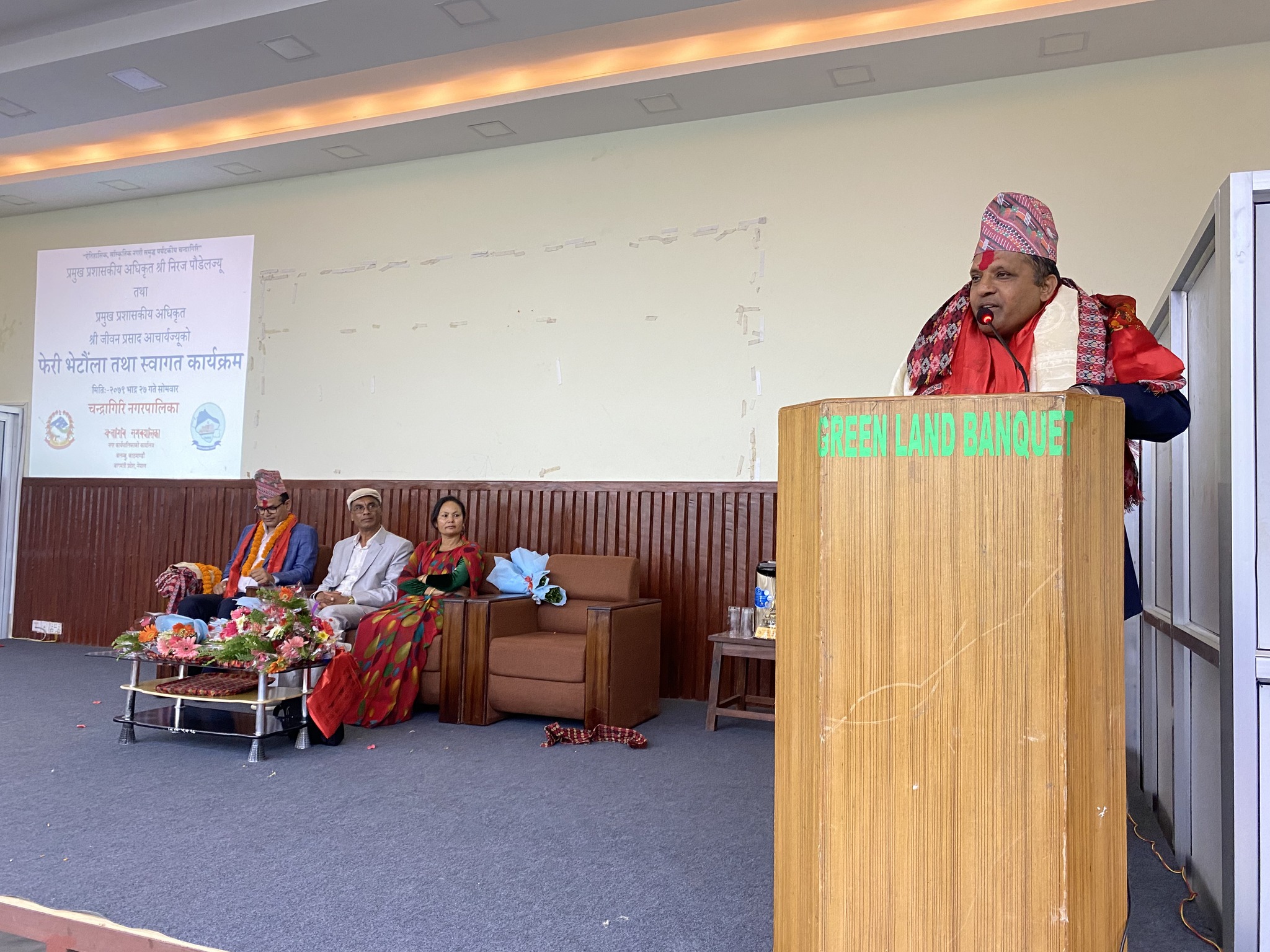 सो क्रममा चन्द्रागिरि नगरका नगरप्रमुख घनश्याम गिरी, उपप्रमुख बसन्ती श्रेष्ठ, नगरका वडाध्यक्षहरू लगायतको उपस्थिति रहेको थियो । आचार्य यसअघि अख्तियार दुरूपयोग अनुसन्धान आयोगमा कार्यरत हुनुहुन्थ्यो ।
