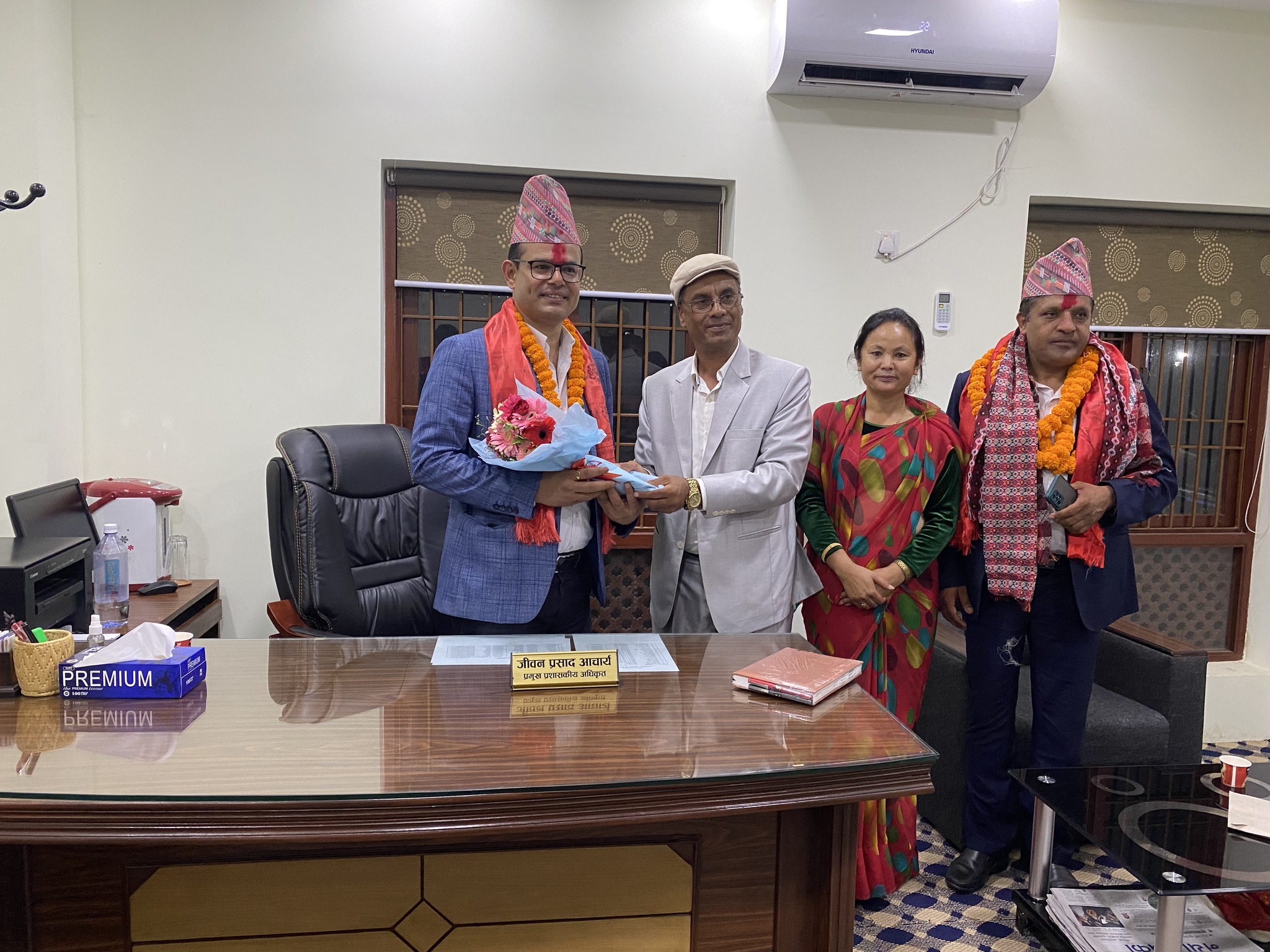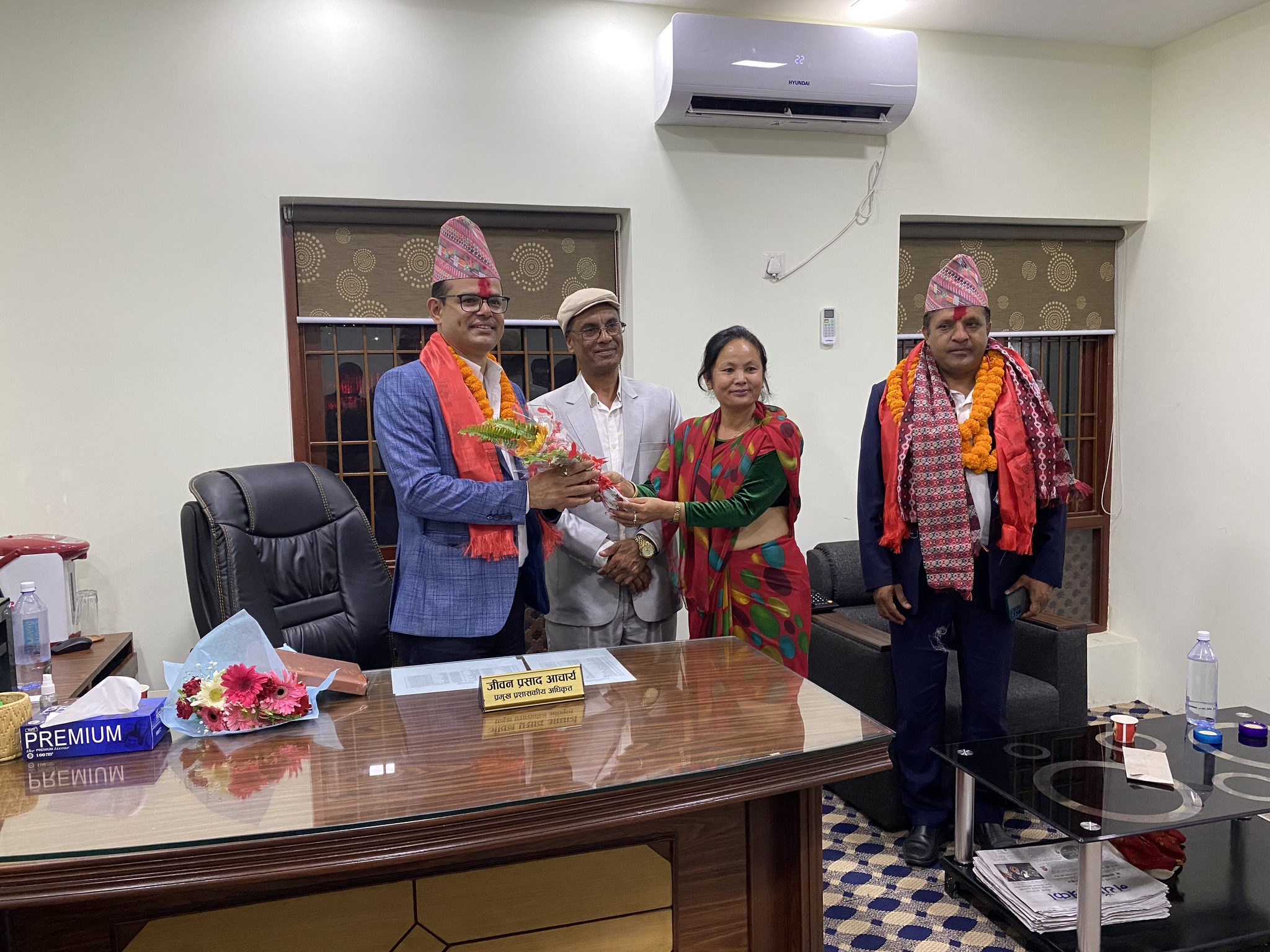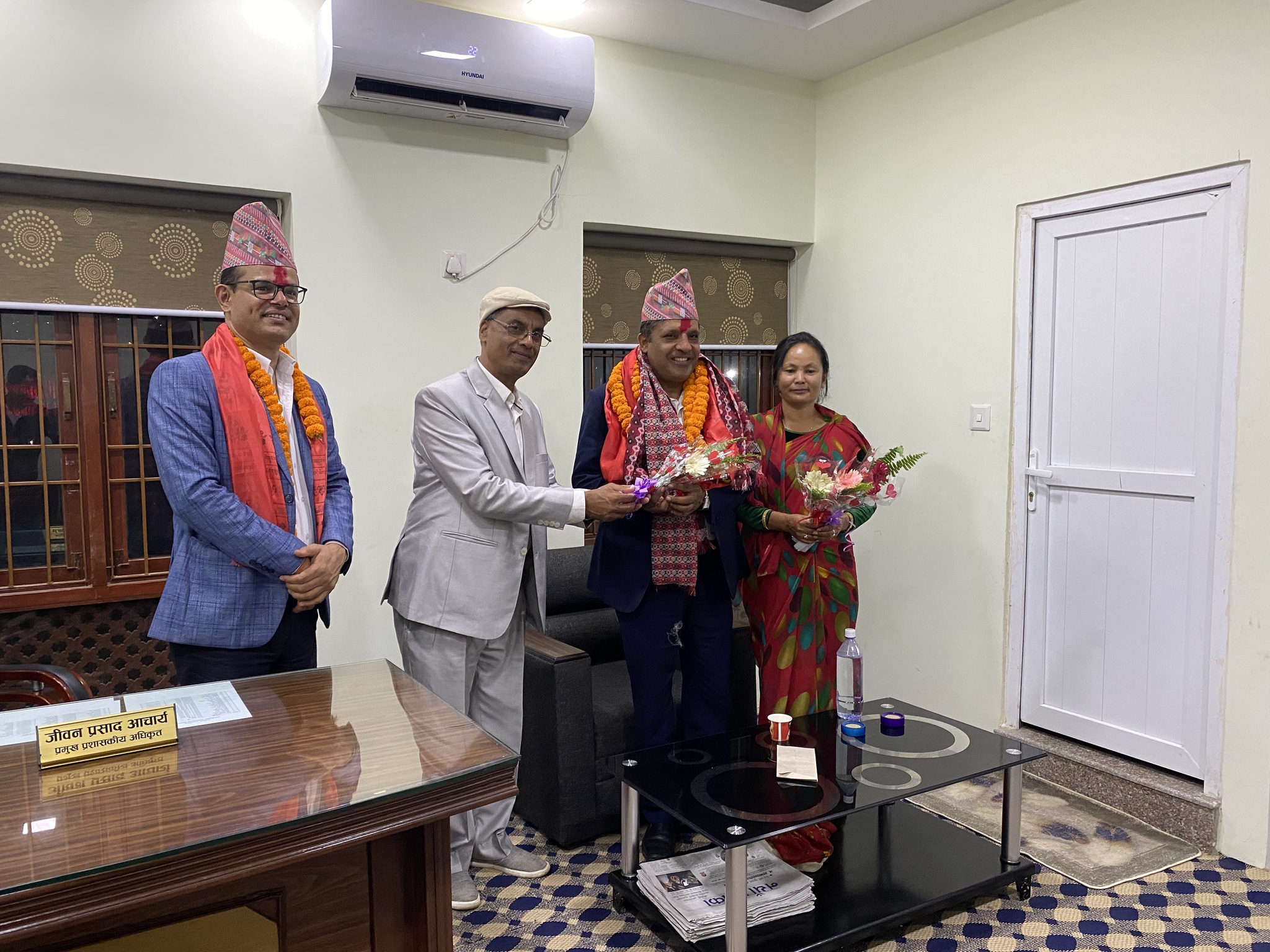 सो क्रममा चन्द्रागिरि नगरका नगरप्रमुख घनश्याम गिरी, उपप्रमुख बसन्ती श्रेष्ठ, नगरका वडाध्यक्षहरू लगायतको उपस्थिति रहेको थियो । आचार्य यसअघि अख्तियार दुरूपयोग अनुसन्धान आयोगमा कार्यरत हुनुहुन्थ्यो ।