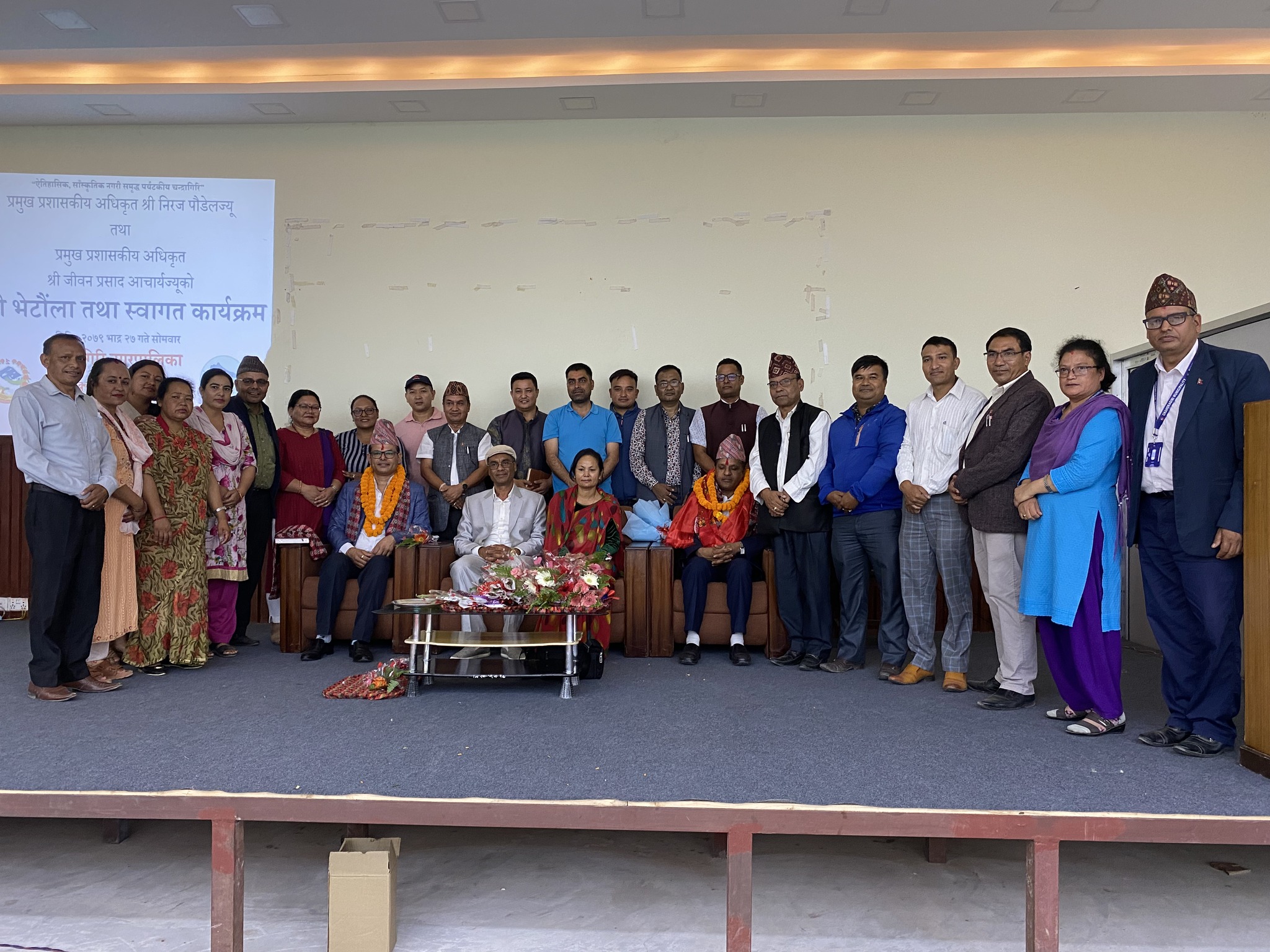 हालका प्रमुख प्रशासकीय अधिकृत निरज पाैडेलको रामेछाप नगरपालिकामा सरूवा भएपछि उहाँको स्थानमा जीवन प्रसाद आचार्यले सोमबार कार्यभार सम्हाल्नु भएको छ । सोमबार नै नगरपालिकाले फेरि स्वागत तथा भेटाैंला कार्यक्रम आयोजना गरि प्रमुख प्रशासकीय अधिकृत निरज पाैडेलको बिदाई गरि प्रमुख प्रशासकीय अधिकृत जीवन प्रसाद आचार्यको स्वागत गरेको छ ।