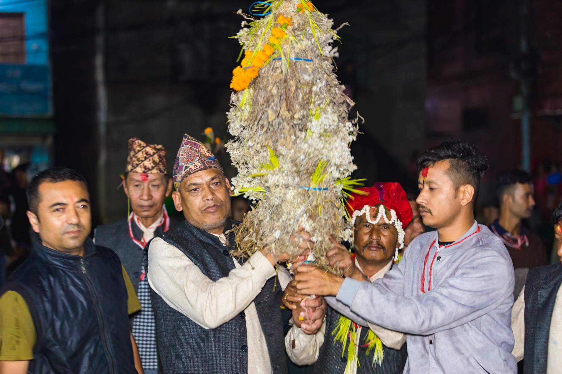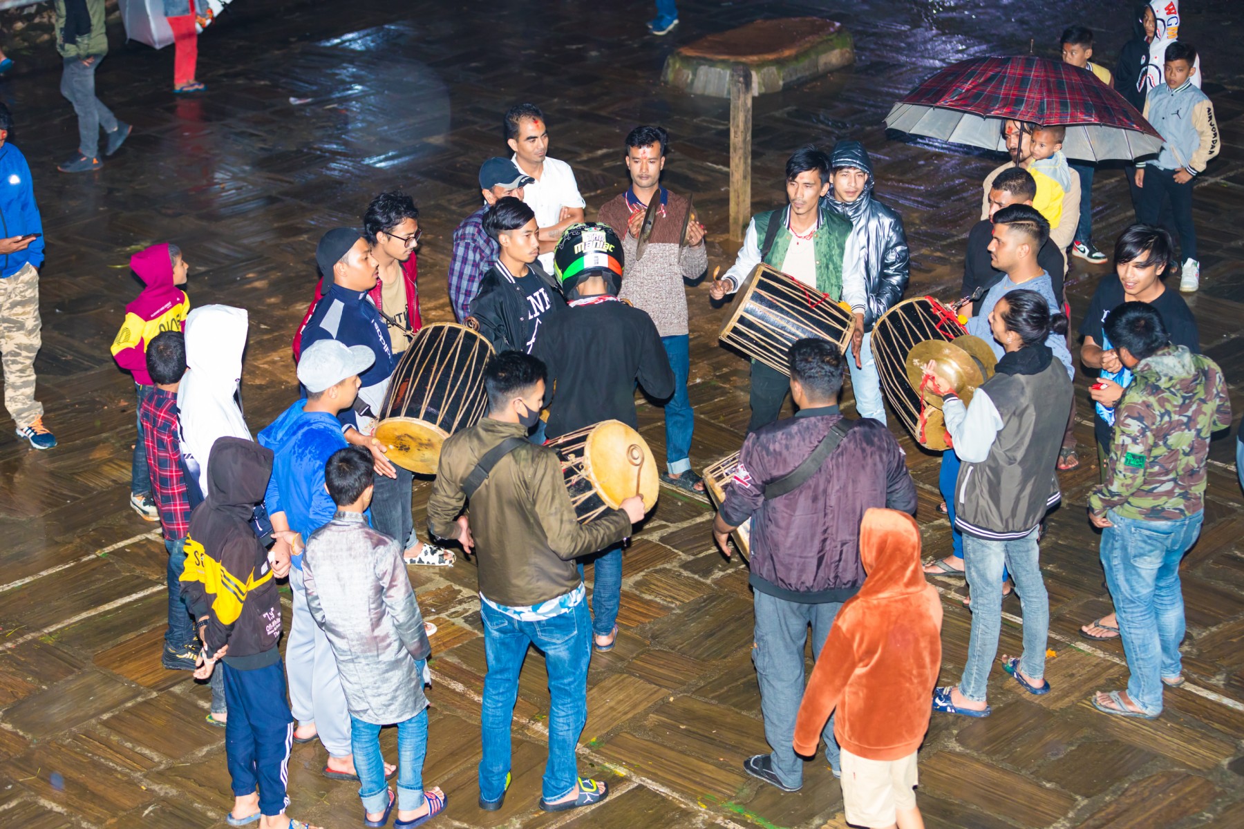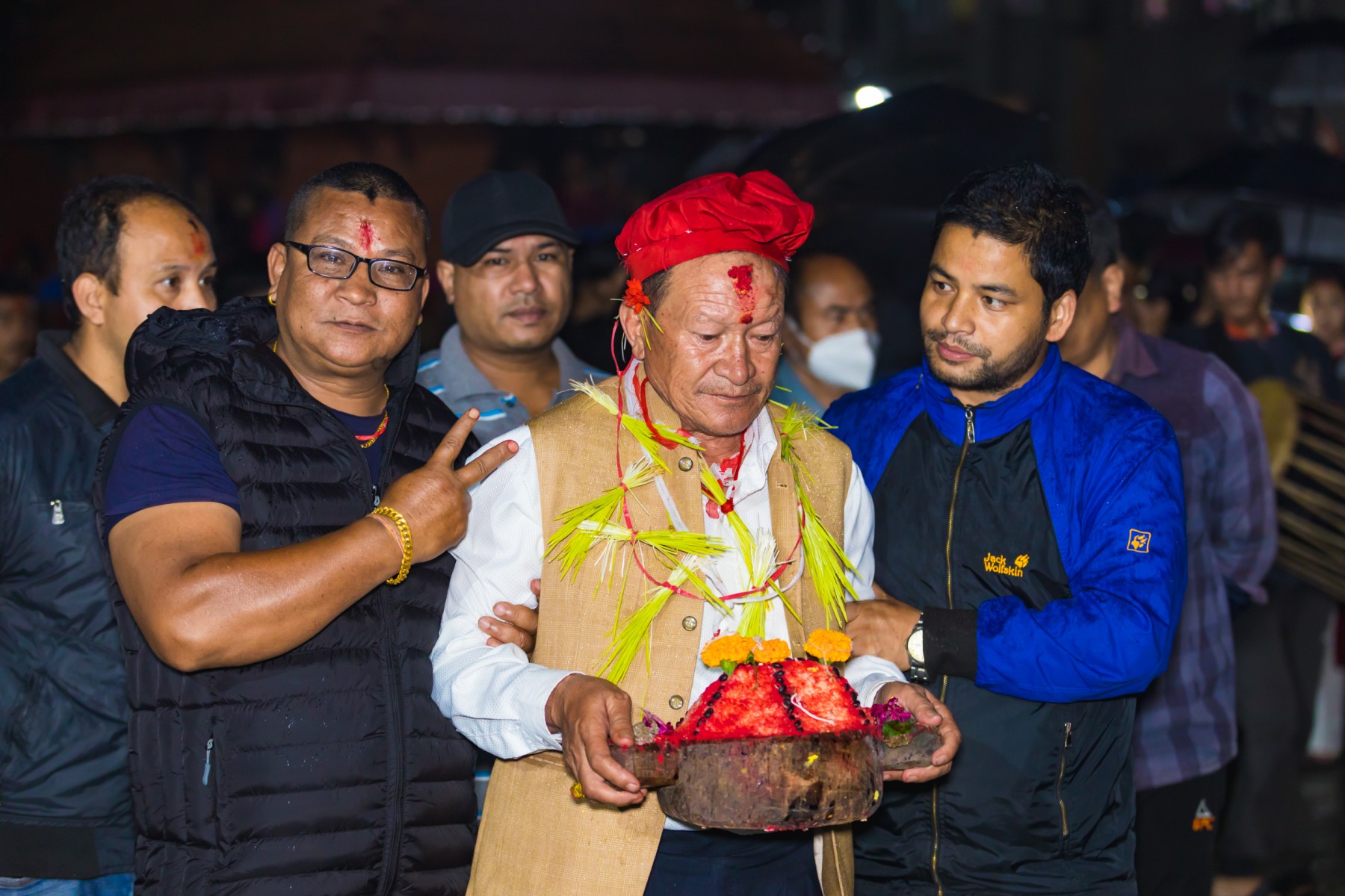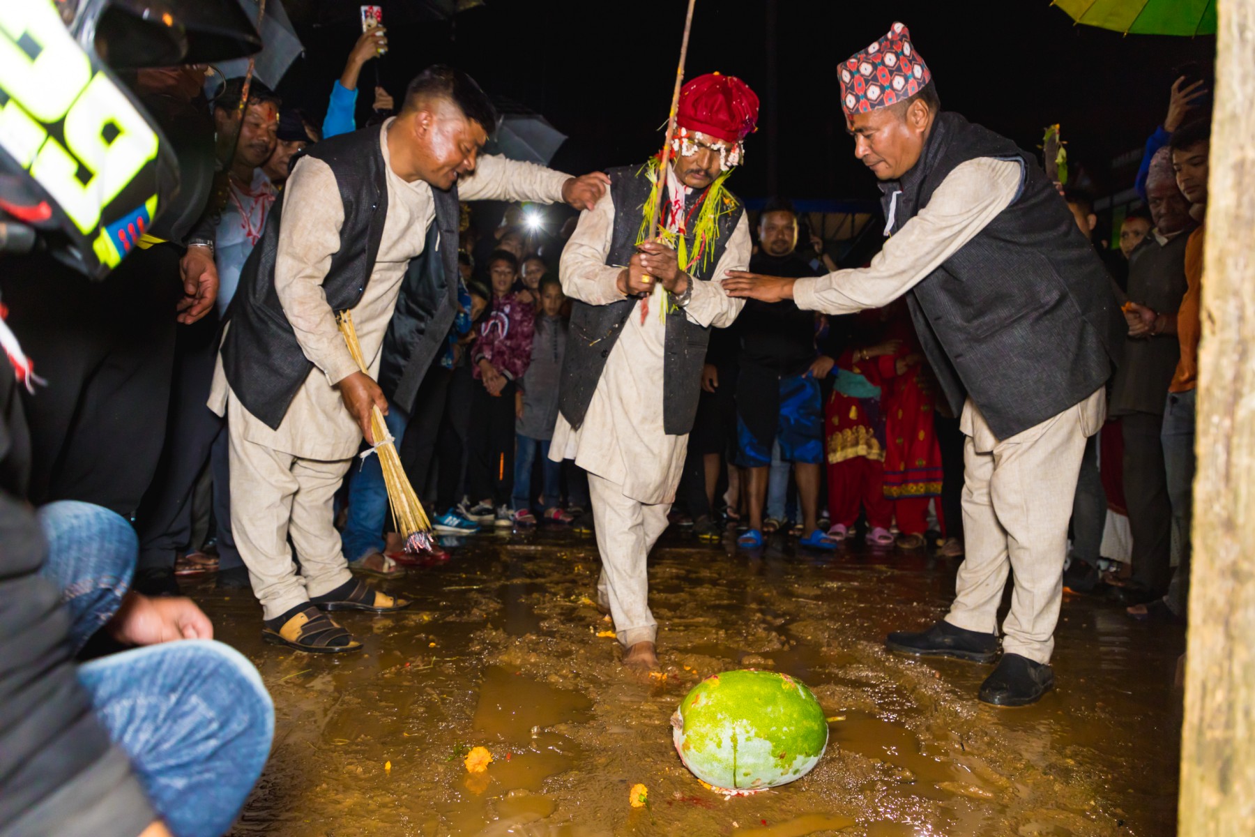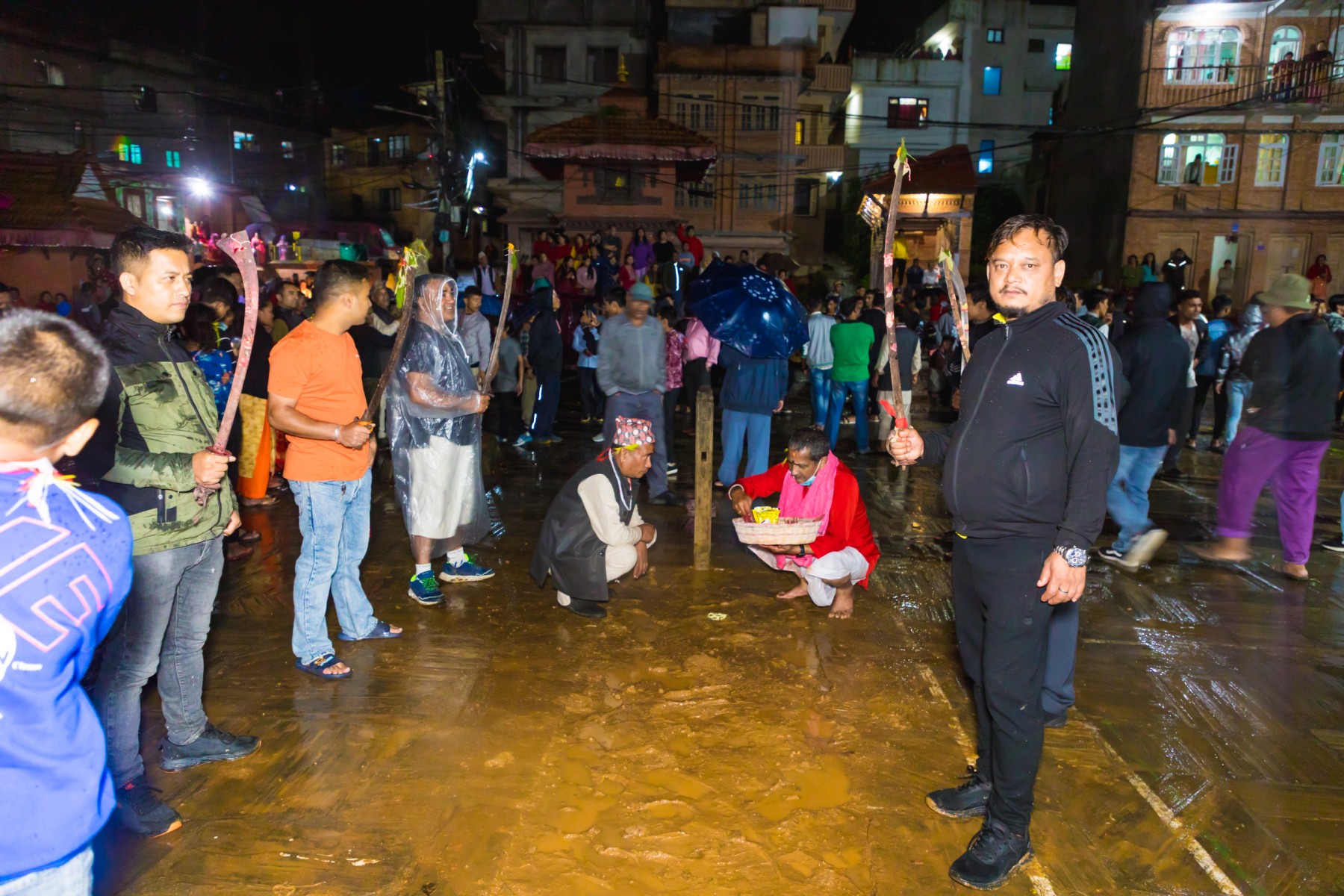 बुधबारसाँझ भारी वर्षाका बाबजुद थानकोट काेतघरका गुठियारहरुले याे जात्रा मनाएका छन् । तस्बिरहरू: प्रकाश गाेपाली/ थानकोट टाईम्स