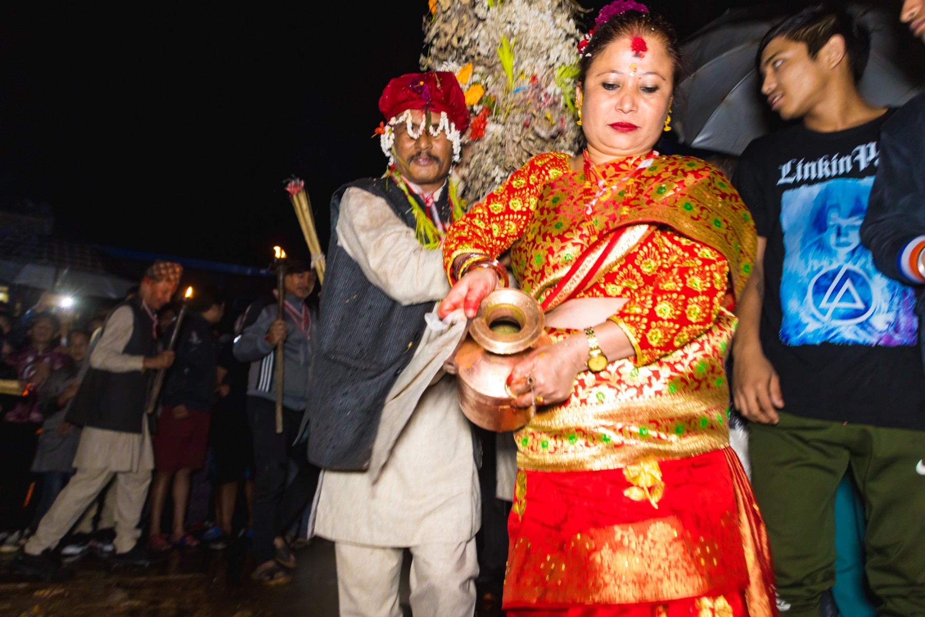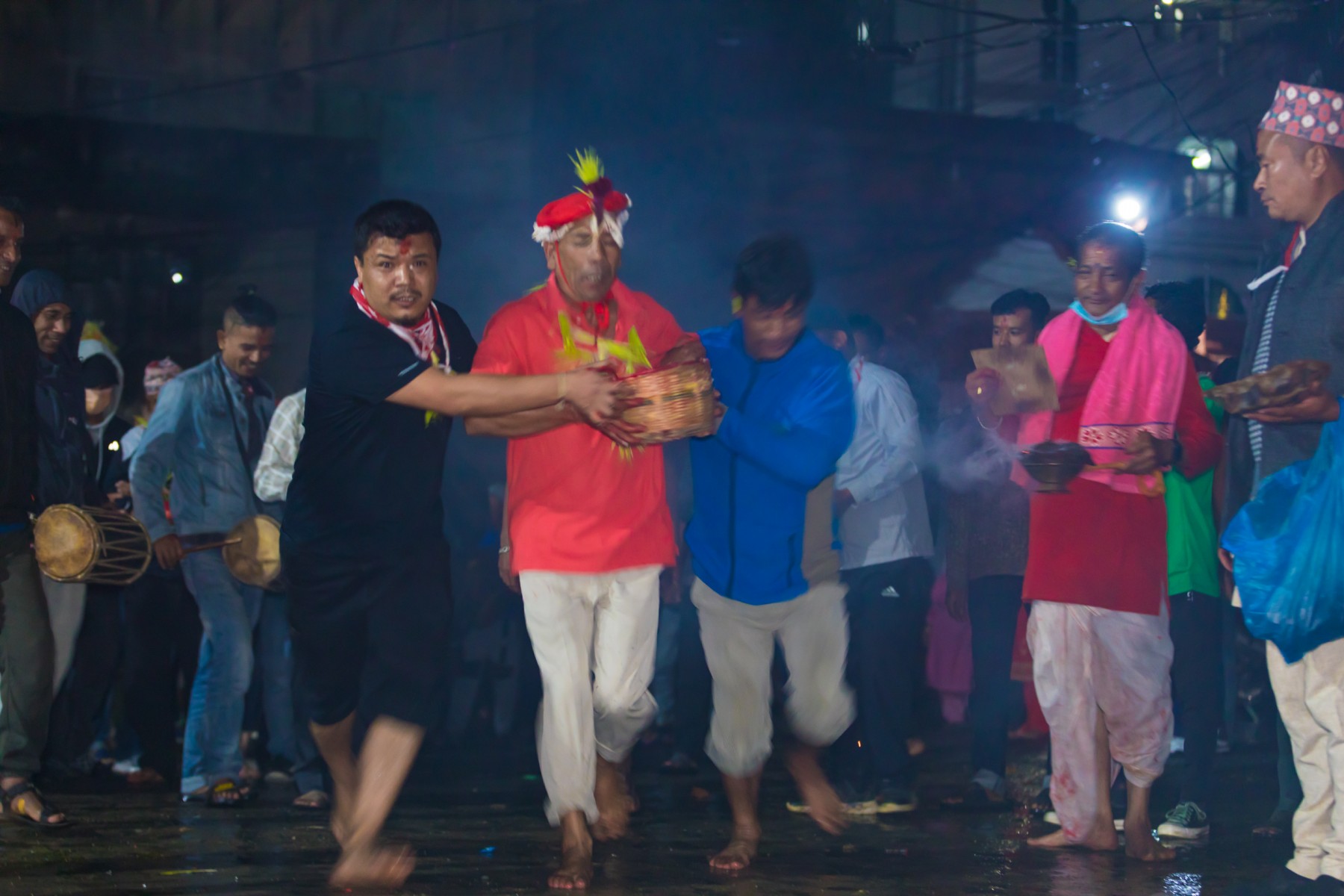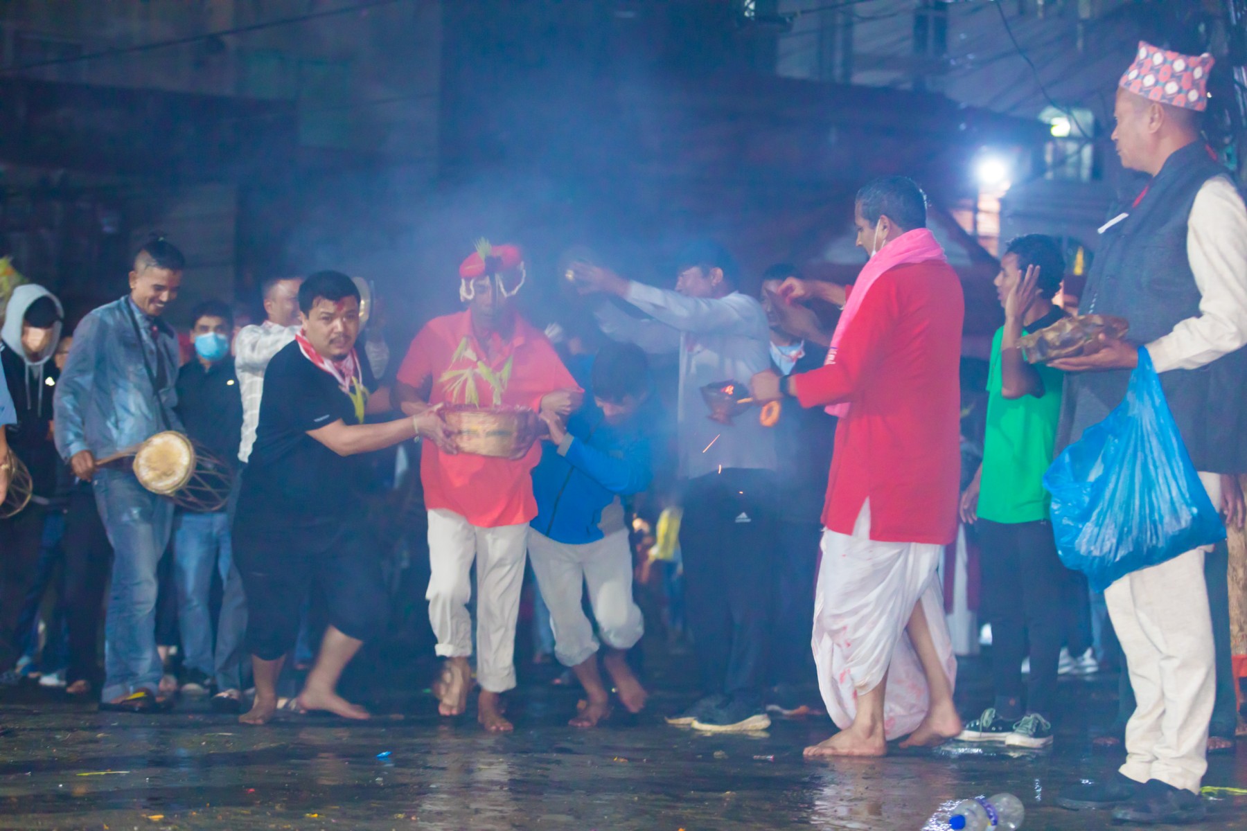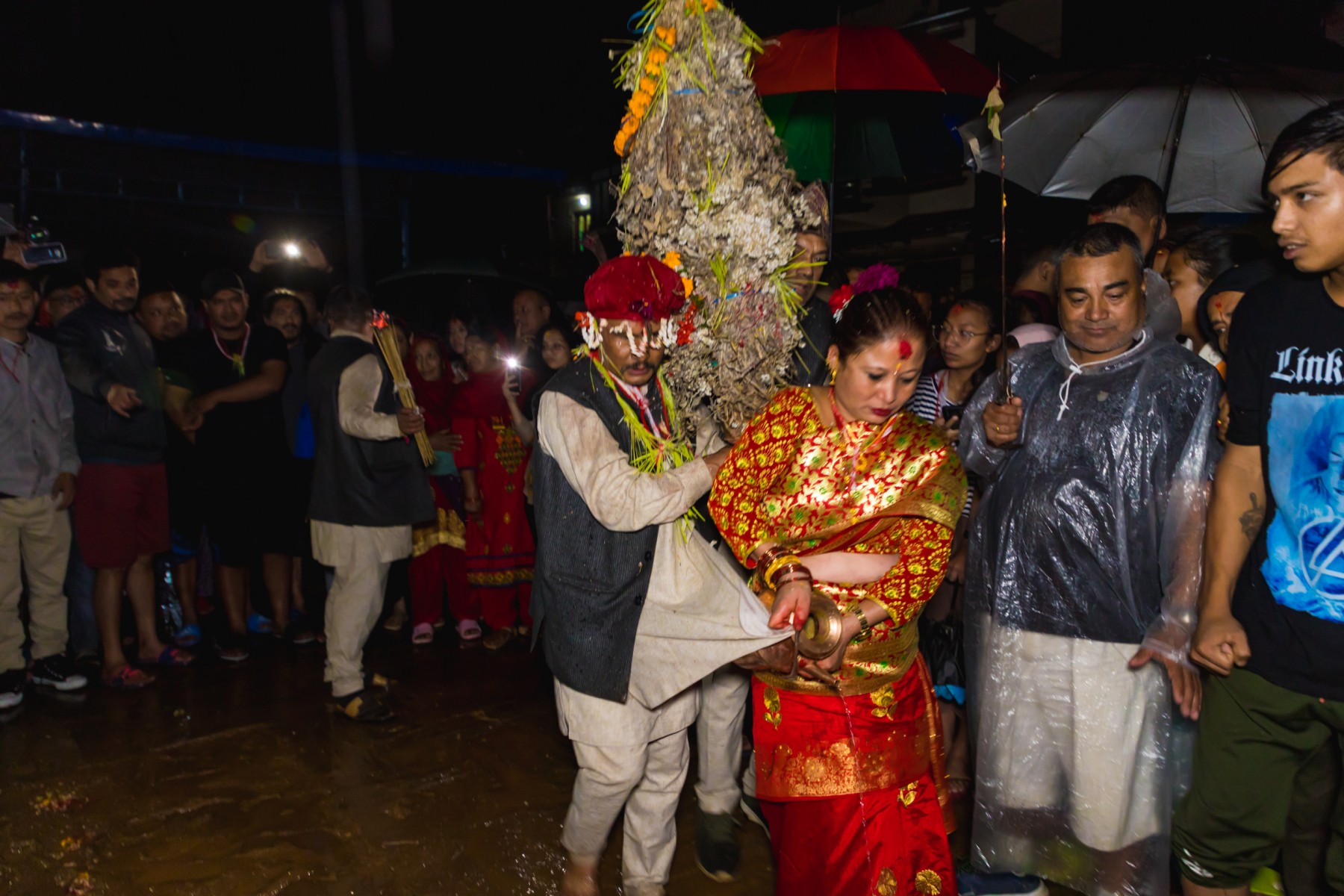 बुधबारसाँझ भारी वर्षाका बाबजुद थानकोट काेतघरका गुठियारहरुले याे जात्रा मनाएका छन् । तस्बिरहरू: प्रकाश गाेपाली/ थानकोट टाईम्स