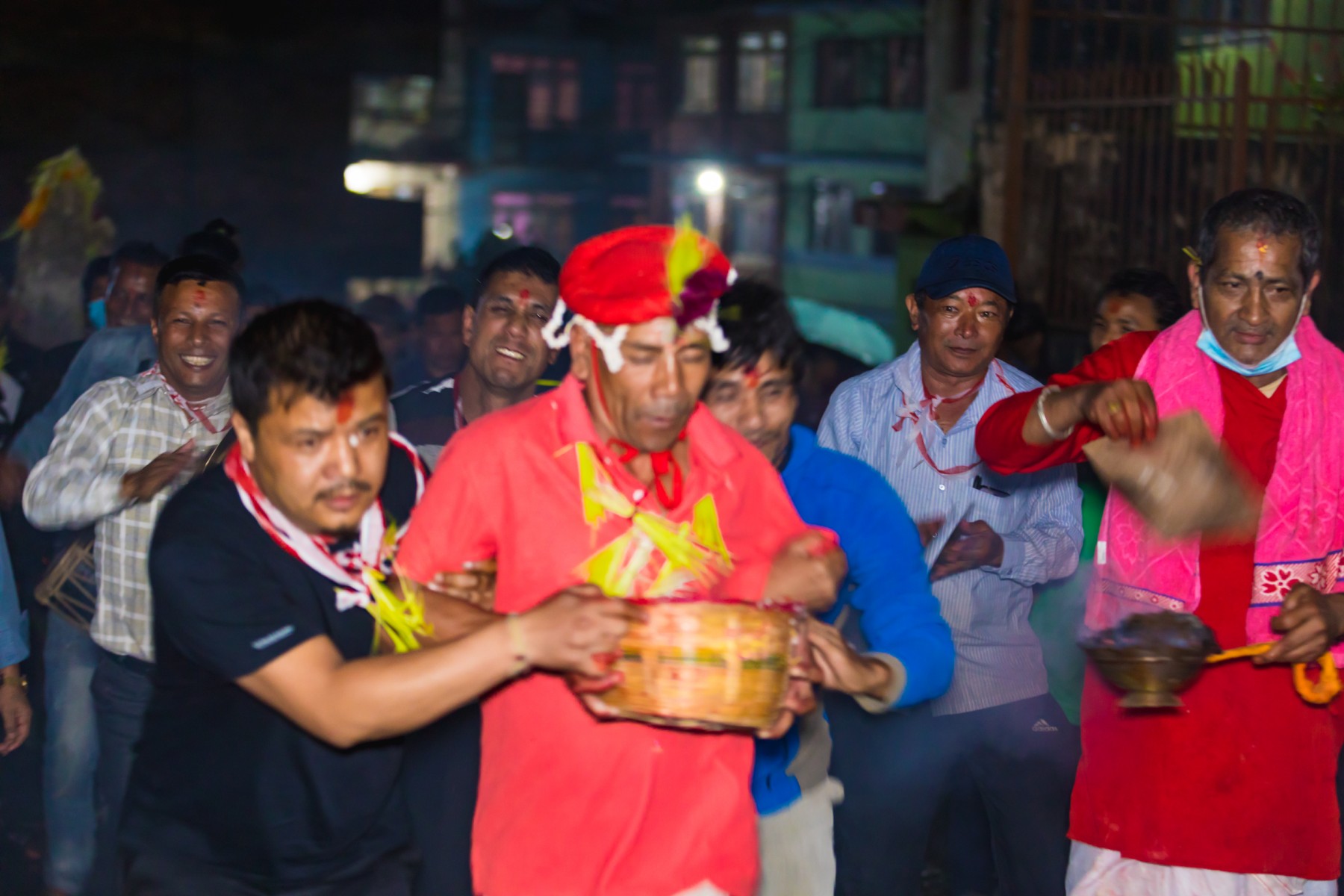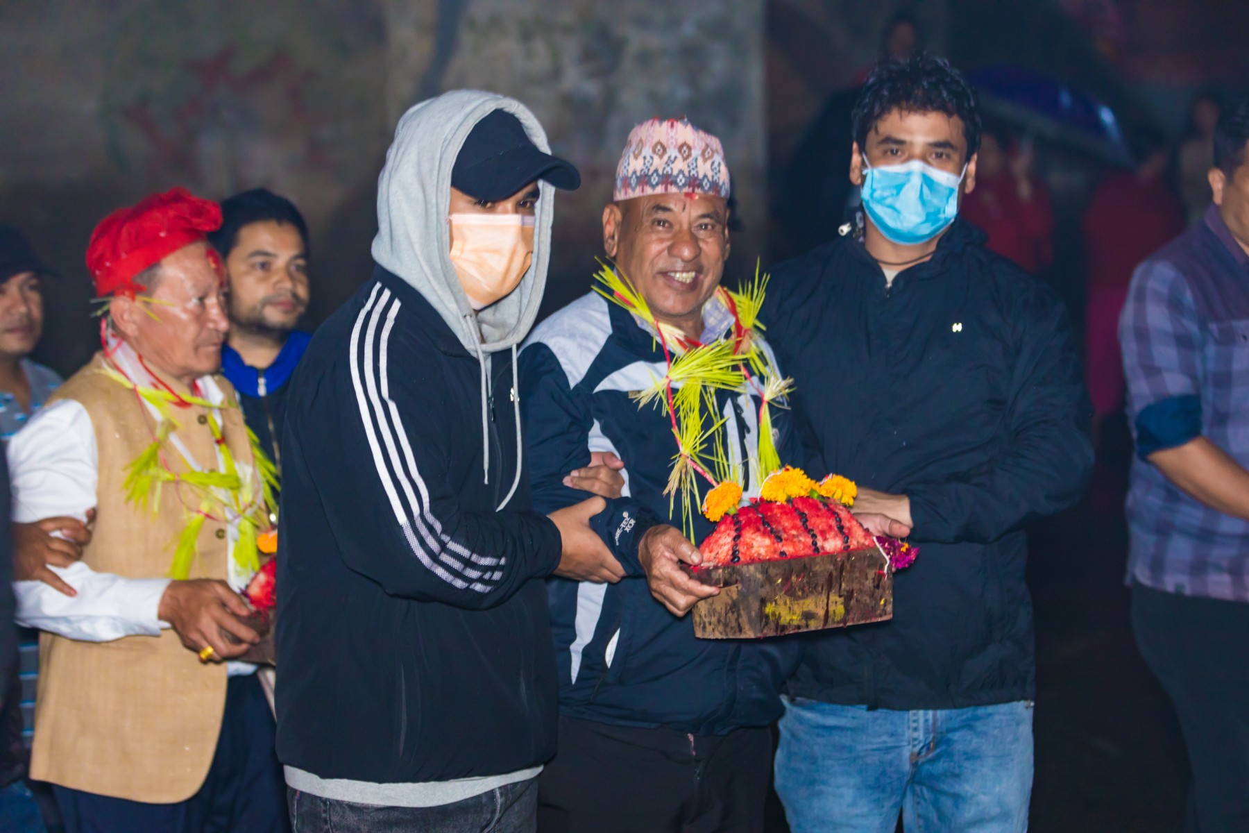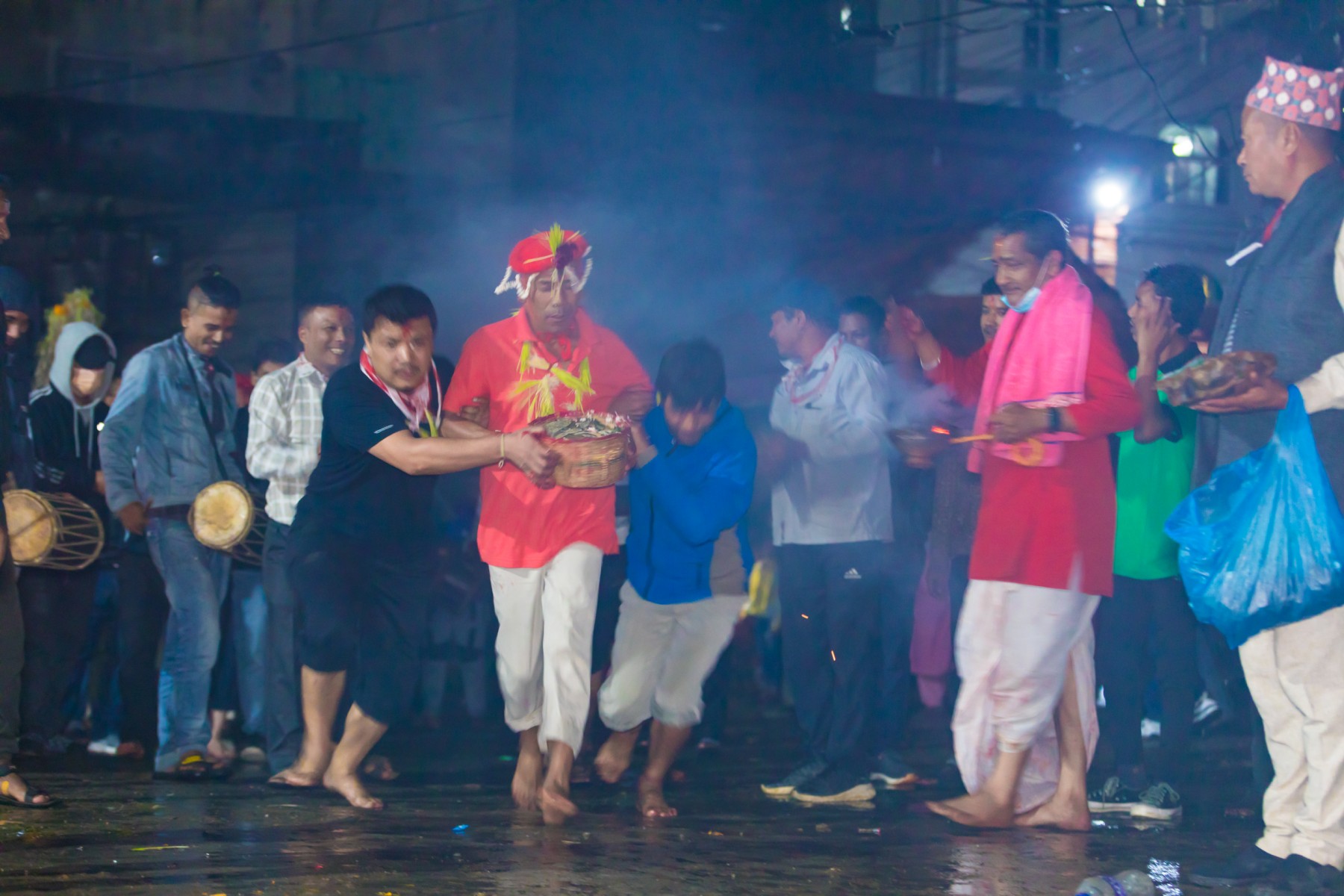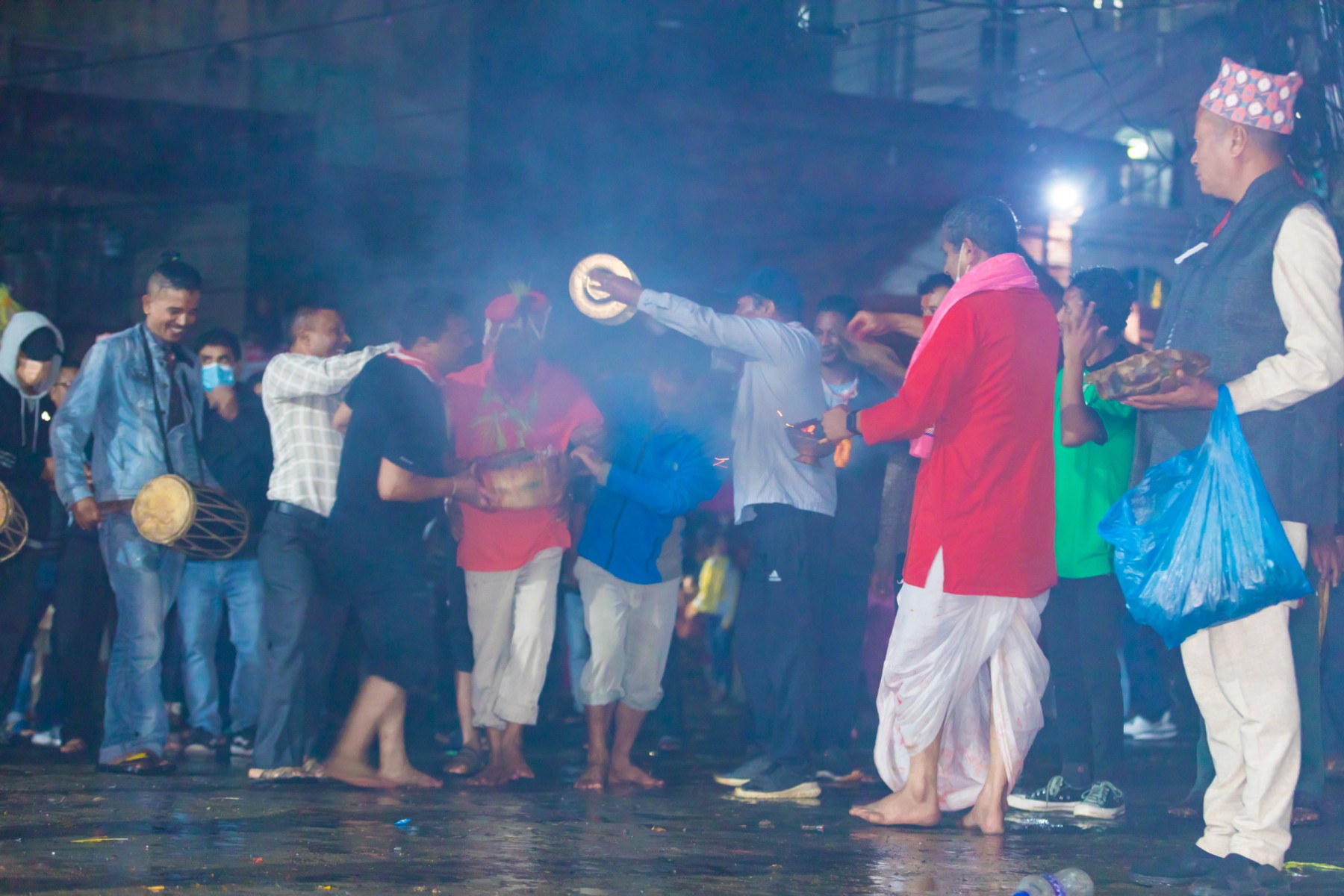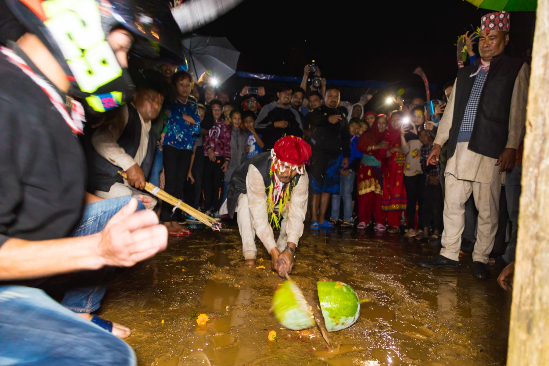 बुधबारसाँझ भारी वर्षाका बाबजुद थानकोट काेतघरका गुठियारहरुले याे जात्रा मनाएका छन् । तस्बिरहरू: प्रकाश गाेपाली/ थानकोट टाईम्स