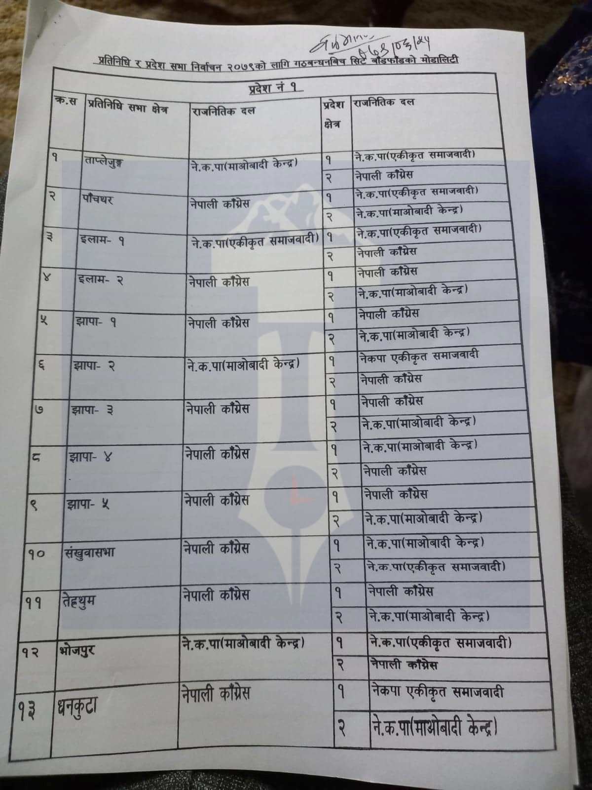 सत्ता गठबन्धनको निष्कर्षः काठमाण्डाै १० मा रूख, प्रदेश क मा हसिँया हताैडा र ख मा कलम