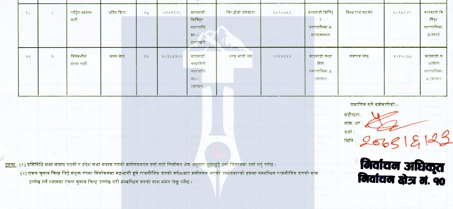 काठमाण्डाै १० को माननीय बन्न ३ स्वतन्त्र सहित १९ जनाको उम्मेदवारी (सूचीसहित)