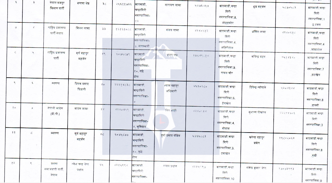 काठमाण्डाै १०, प्रदेश ख मा सांसद् बन्न २ स्वतन्त्र सहित १२ जनाको उम्मेदवारी (सूचीसहित)