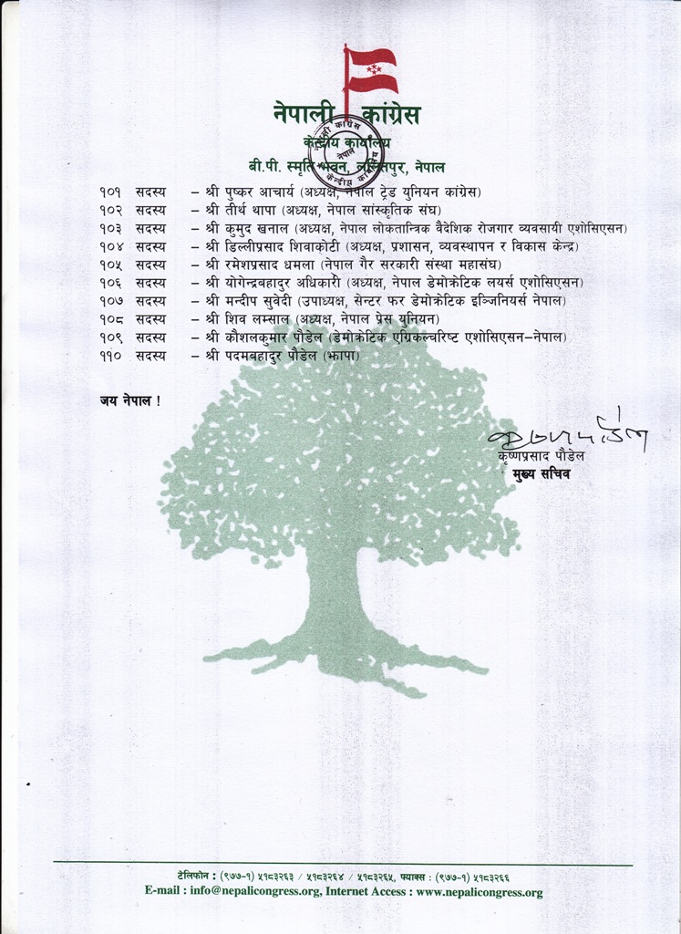 नेपाली कांग्रेसले ४ मंसिरमा हुने प्रतिनिधि र प्रदेश सदस्यसभा निर्वाचनका लागि १ सय १० सदस्यीय केन्द्रीय परिचालन समिति गठन गरेको छ ।