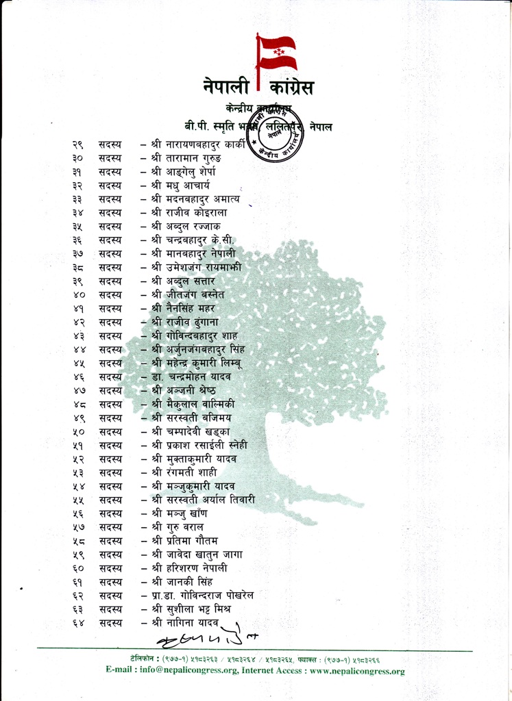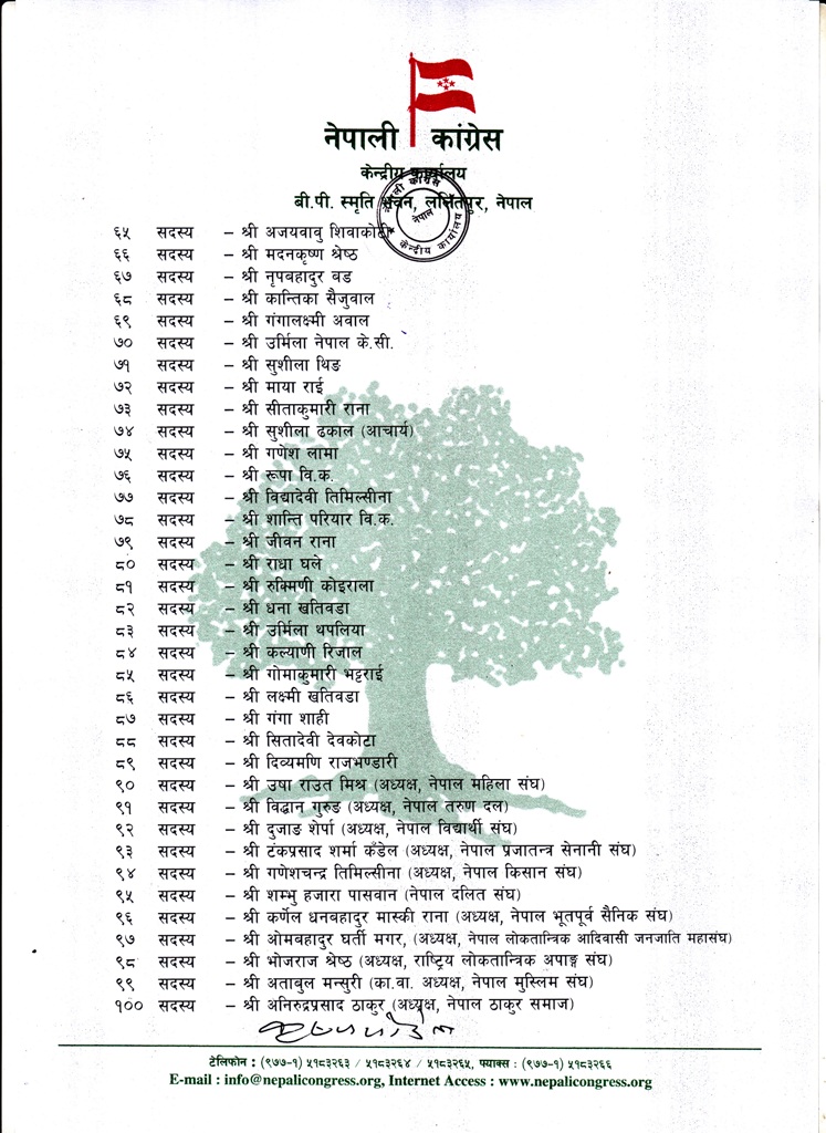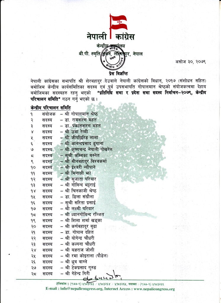 नेपाली कांग्रेसले ४ मंसिरमा हुने प्रतिनिधि र प्रदेश सदस्यसभा निर्वाचनका लागि १ सय १० सदस्यीय केन्द्रीय परिचालन समिति गठन गरेको छ ।