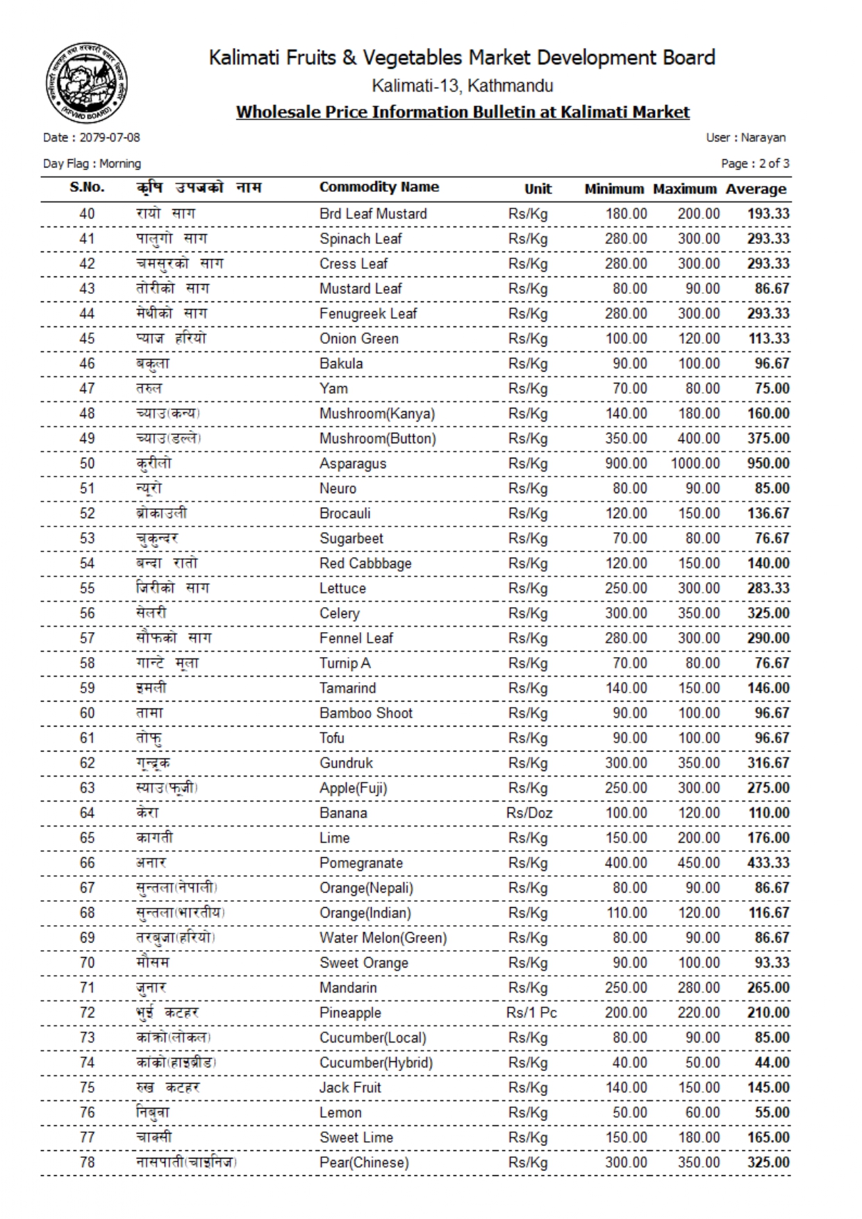 कालिमाटी फलफूल तथा तरकारी बजार विकास बोर्डले कालिमाटी तरकारी बजारका लागि नयाँ मूल्यसूची कायम गरेको छ ।