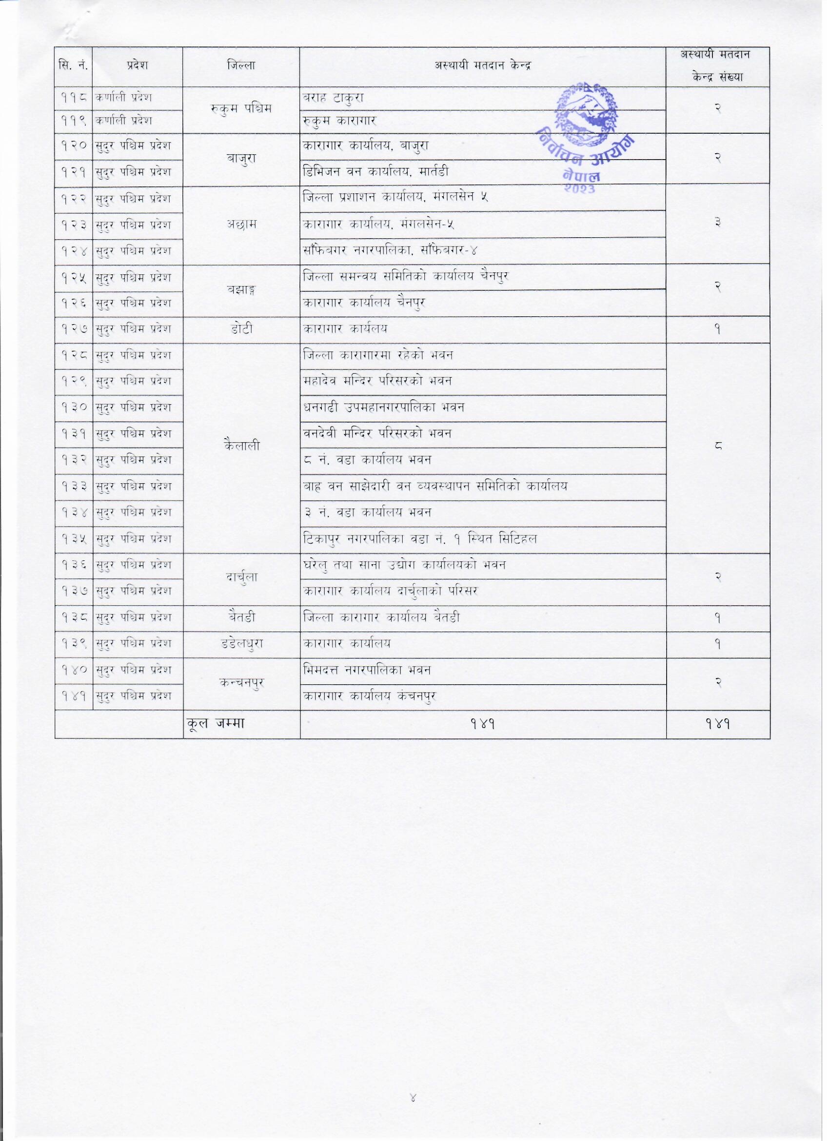 निर्वाचन आयोगले मंसिर ४ गते हुने प्रदेश र प्रतिनिधि सभा सदस्य निर्वाचन अन्तर्गत समानुपातिक निर्वाचनमा मतदान गर्ने अस्थायी मतदाताका लागि मतदान केन्द्र तोकेको छ ।