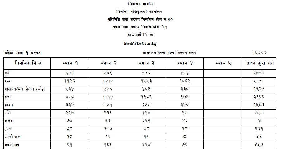 काठमाण्डाै क्षेत्र नं. १० को तथा प्रदेश १ को मतगणना जारी रहँदा दुवैमा नेपाली काँग्रेसले अग्रता बढाउँदै लगेको छ ।