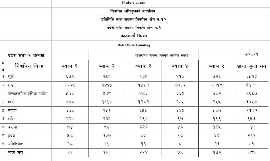 काठमाण्डाै क्षेत्र नं. १० अन्तर्गत प्रदेश क को मत गणना जारी छ ।