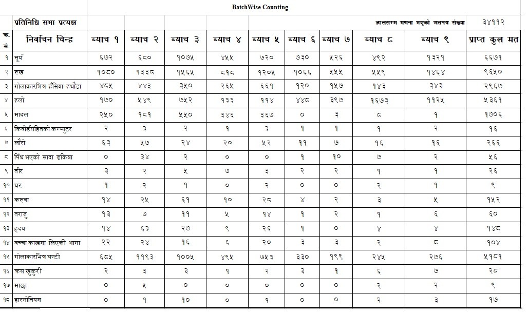 प्रतिनिधि सभा सदस्य निर्वाचन अन्तर्गत काठमाण्डाै क्षेत्र नं. १० को मतगणना जारी छ । हालसम्म यस क्षेत्रको ३४११२ मत गणना सकिँदा नेकपा एमाले दोश्रो स्थानमा छ ।