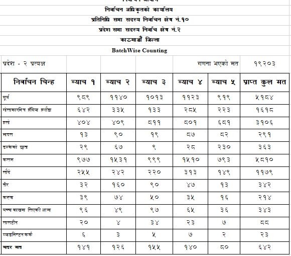 काठमाण्डाै क्षेत्र नंं १० अन्तर्गत प्रदेश ख को मतगणना सकिएको छ ।
