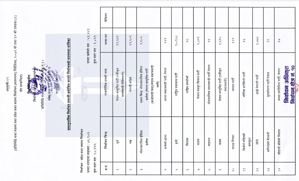 काठमाण्डाै क्षेत्र नंं. १० मा समानुपातिक तर्फको मतगणनासमेत सकिएको निर्वाचन अधिकृतको कार्यालयले जनाएको छ ।