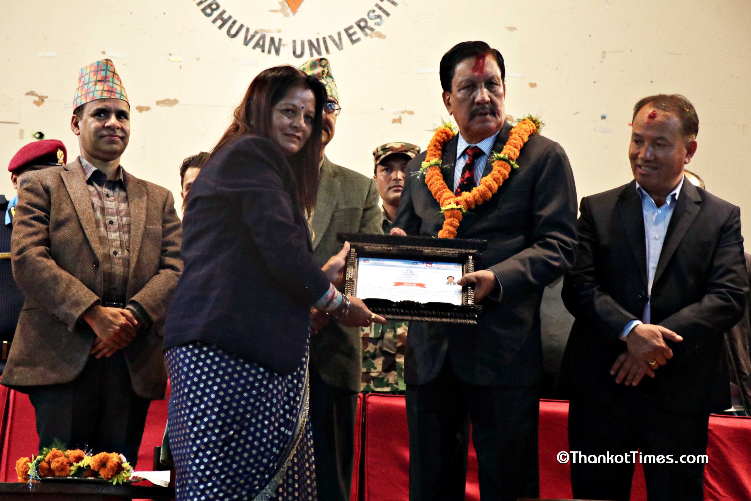 कीर्तिपुरस्थित मतगणनास्थलमा शनिबार अपरान्ह आयोजित एक कार्यक्रमका बीच काठमाण्डाै क्षेत्र नंं १० का निर्वाचन अधिकृत फणेश्वरी घिमिरेले निर्वाचित भएको प्रमाणपत्र वितरण गर्नुभएको हो ।
