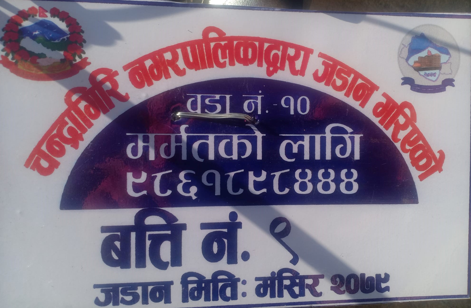 नगरपालिकाले जडान गरेका सबै सडक बत्ति भएका खम्बामा बत्ति जडान गरिएको वडा, बत्ति जडान भएको मिति तथा मर्मतका लागि प्राविधिक चाहिएको अवस्थामा सम्पर्क गर्न प्राविधिकको मोबाइल नम्बरसमेत टाँसिएको छ ।