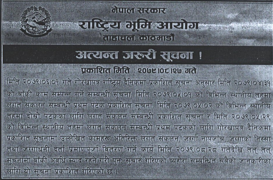 चन्द्रागिरि नगरपालिकाका भूमिहीन र अव्यवस्थित बसोबासीलाई जग्गा दिन पुनः सूचना आह्वान