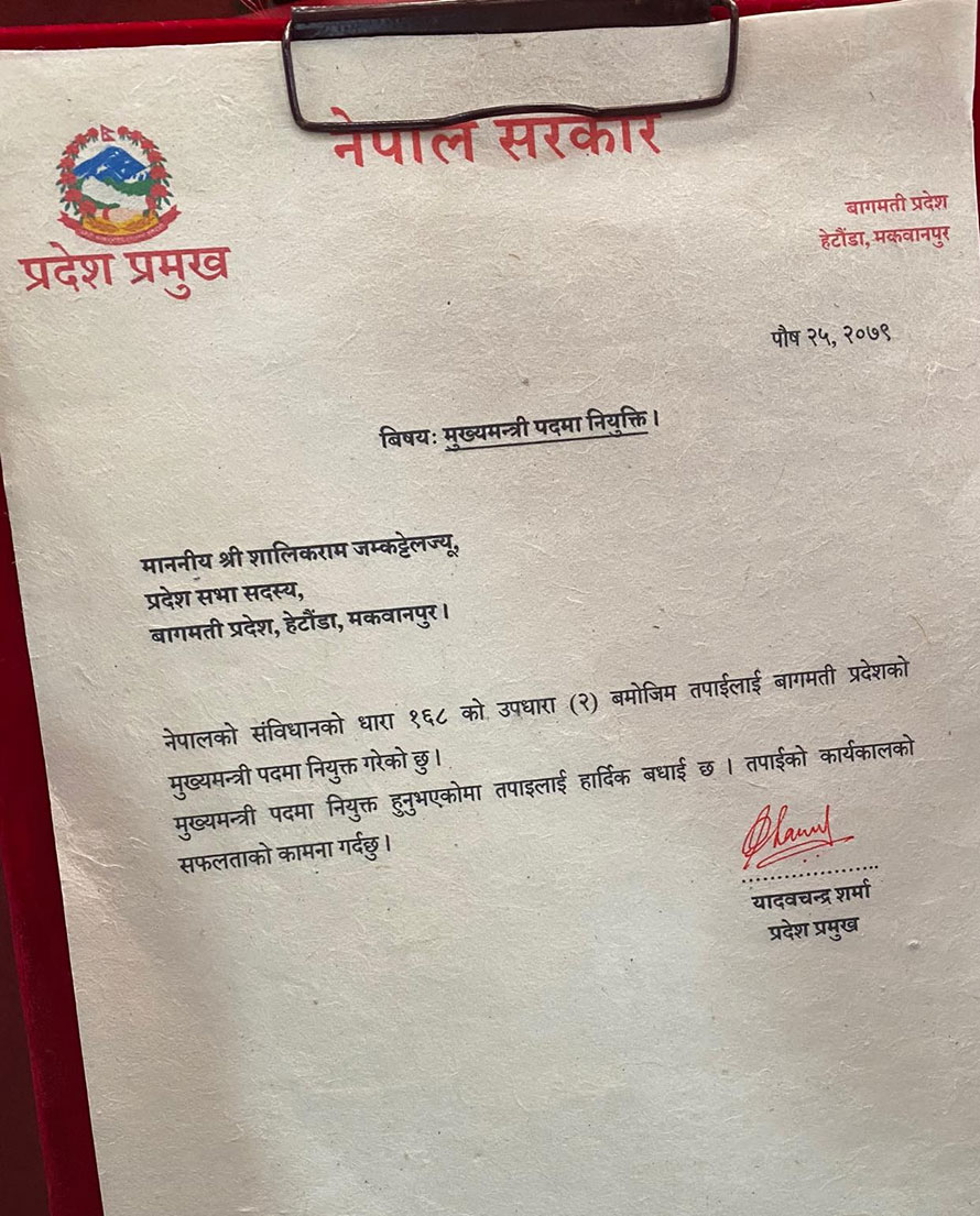 बागमती प्रदेशको मुख्यमन्त्रीमा शालिकराम जमकट्टेल नियुक्त, नेकपा एससहित पाँच दलको समर्थन