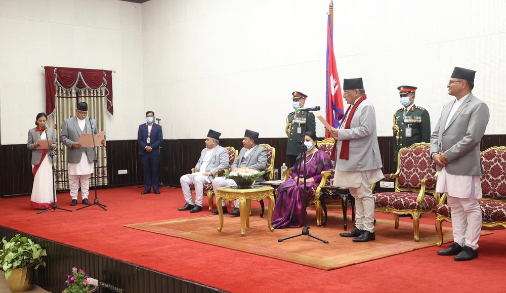 नवनियुक्त मन्त्रीहरूलाई मंगलबार दिउँसो राष्ट्रपति विद्यादेवी भण्डारीले शपथ खुवाएकी थिइन् भने राज्यमन्त्रीहरूलाई प्रधानमन्त्री प्रचण्डले शपथ खुवाएका थिए ।
