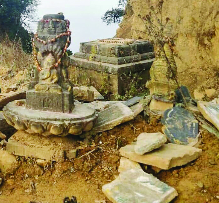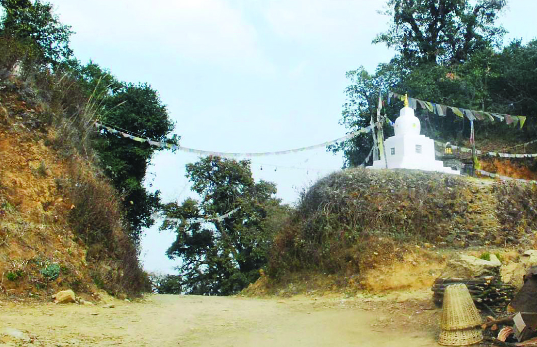 अहिले भञ्ज्याङमा सडक फराकिलो पार्न दायाँ-बायाँको पहाड मात्रै ताछिएन, करीब १५ फिट भुइँ पनि खोस्रेको छ। सडकको पश्चिममा रहेका स्तूपसम्म सहजै पुग्न नसकिने मात्र होइन, स्तूप नै नदेखिने भइसकेछ। स्तूप मासिएको शङ्का गर्दै भग्नावशेष त भेटिएला कि भनेर माथि उक्लियौं।