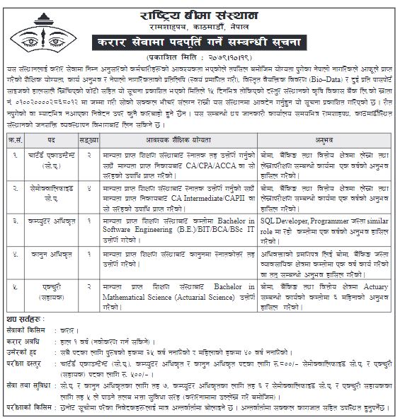 राष्ट्रिय बिमा संस्थानले कर्मचारीका लागि आवेदन आह्वान गरेको छ ।
