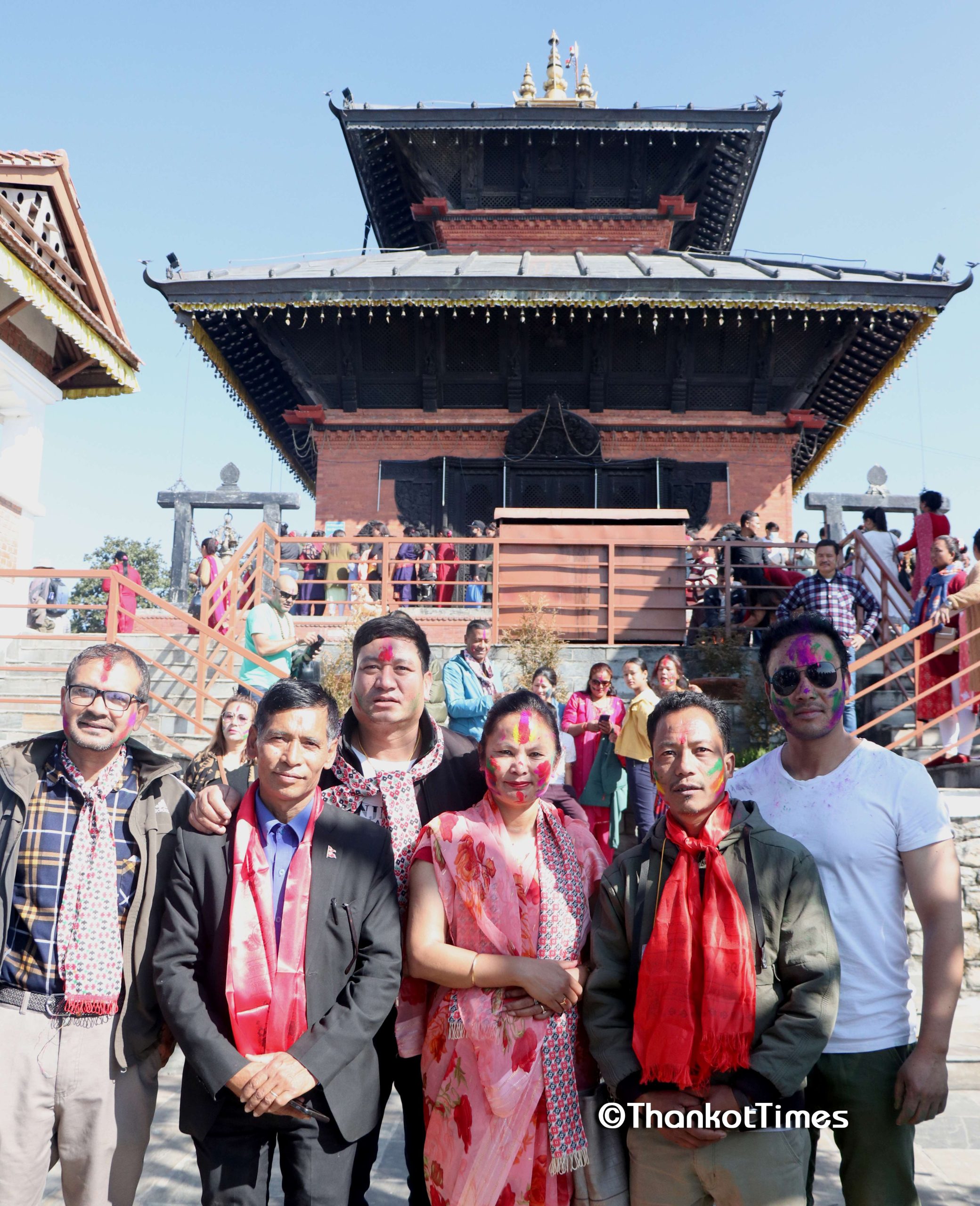भालेश्वर डाँडामा फागु खेल्दै सेल्फी खिच्न स्वदेशी तथा विदेशीहरूको घुइँचो