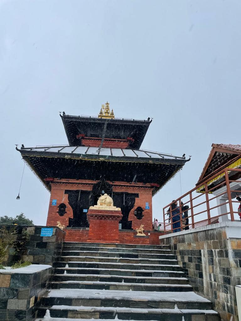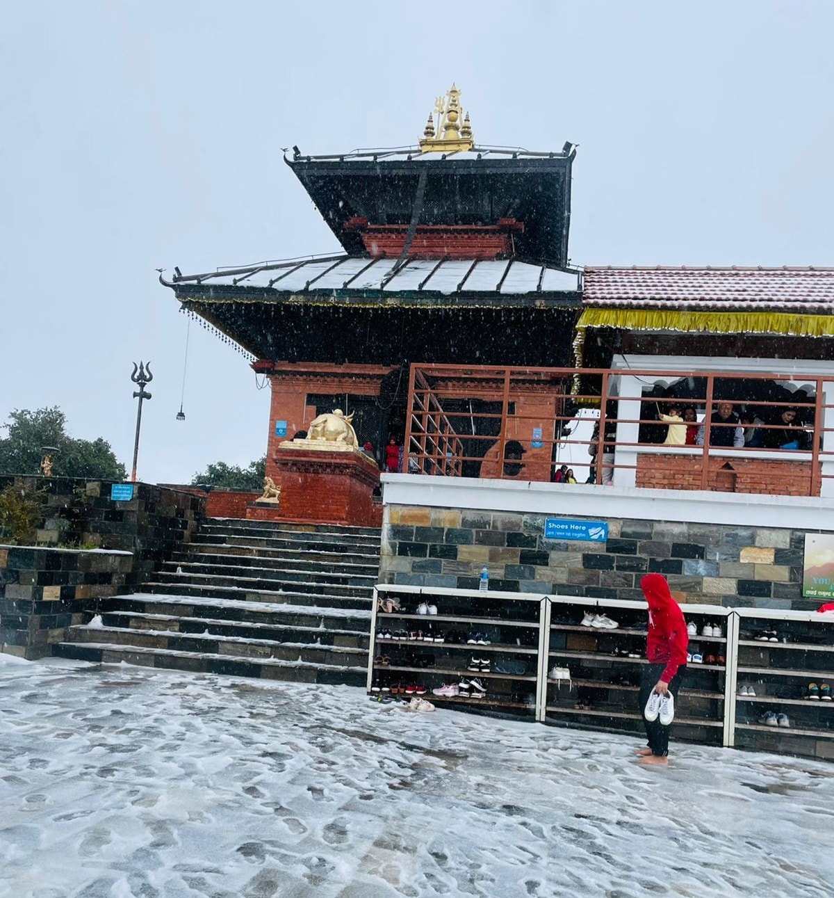 चन्द्रागिरि डाँडामा शनिबार मध्यान्ह हल्का हिमपात भएको छ । पानी परेसँगै चन्द्रागिरि डाँडास्थित भालेश्वर महादेव मन्दिर वरपर हिउँ परेको हो जुन केहि समयमै पग्लिएको थियो ।