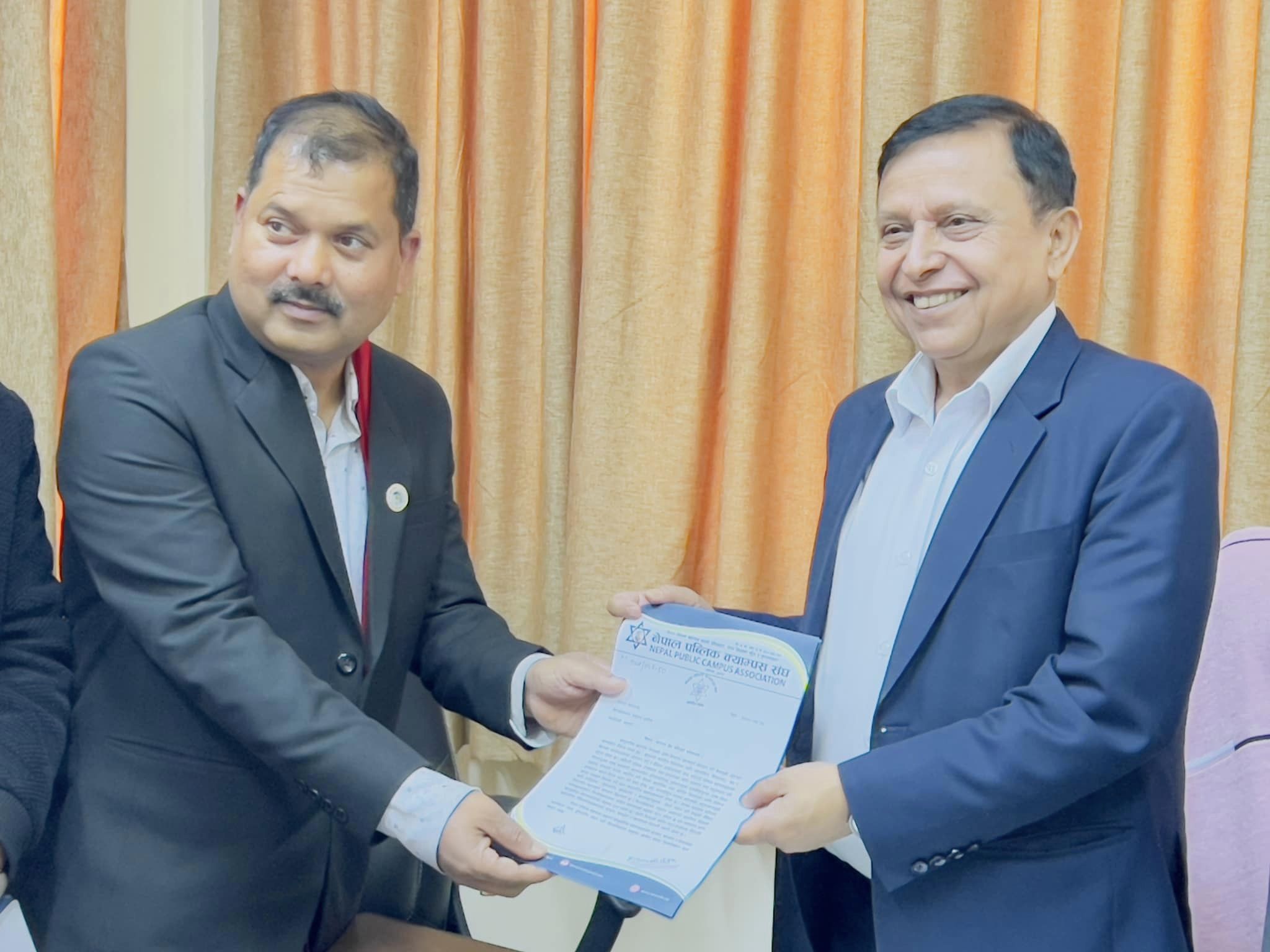 सामुदायिक क्याम्पसहरूको छाता संगठन नेपाल पब्लिक क्याम्पस संघले बुधबार विश्वविद्यालय अनुदान आयोग अध्यक्षलाई विभिन्न माग समेटिएको १२ बुँदे पत्र बुझाएको छ ।