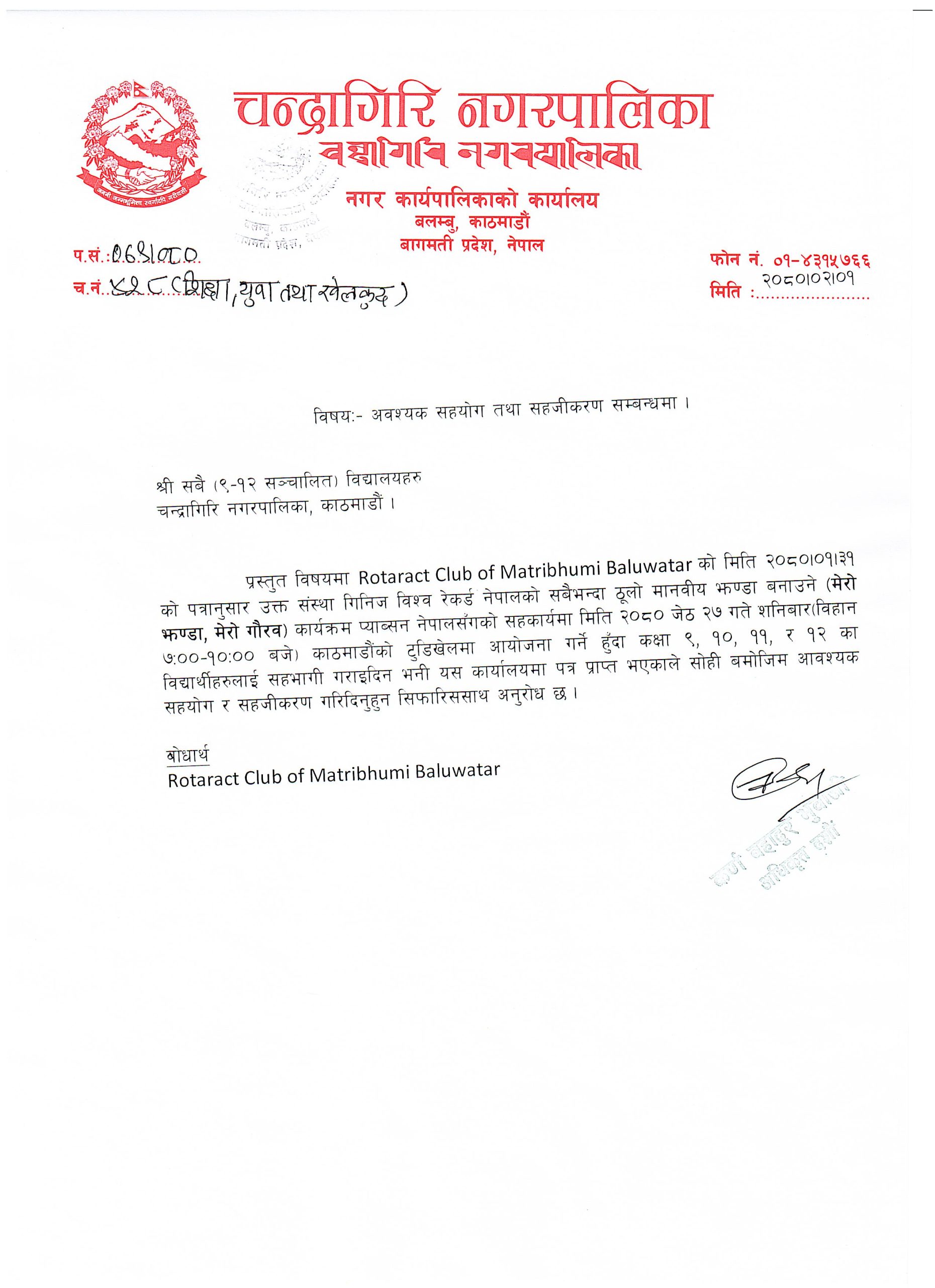 चन्द्रागिरि नगरपालिकाले पनि सो अभियानमा सहभागिताका लागि नगर क्षेत्रका विद्यालयहरूमा अनुरोध गरेको छ ।