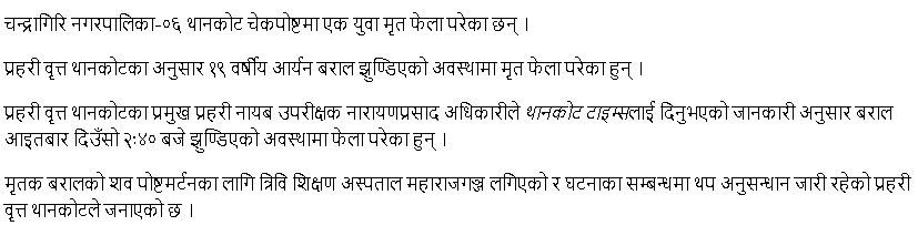 थानकोट चेकपोष्टमा झुण्डिएको अवस्थामा भेटिए एक युवक