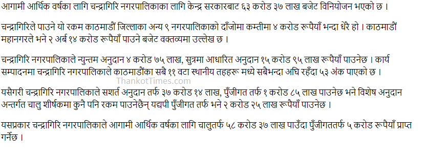 चन्द्रागिरि नगरपालिकालाई ६३ करोड ३७ लाख बजेट, चालु तर्फ ५८ करोड ३७ लाख