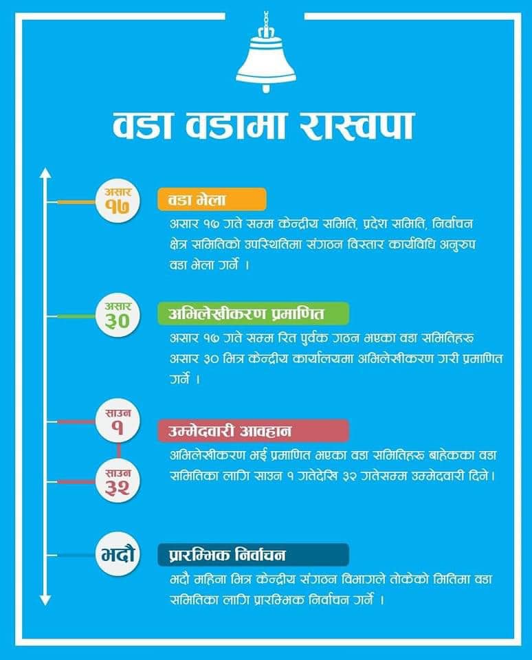 सो पार्टीले असार ३० गतेभित्र असार १७ गतेसम्म रितपूर्वक गठन भएका वडा समितिरू असार ३० भित्र केन्द्रीय कार्यालयमा अभिलेखीकरण गरी प्रमाणित गरिने जनाएको छ।