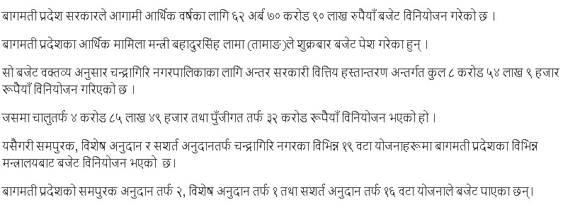 चन्द्रागिरि नगरपालिकालाई ६३ करोड ३७ लाख बजेट, चालु तर्फ ५८ करोड ३७ लाख