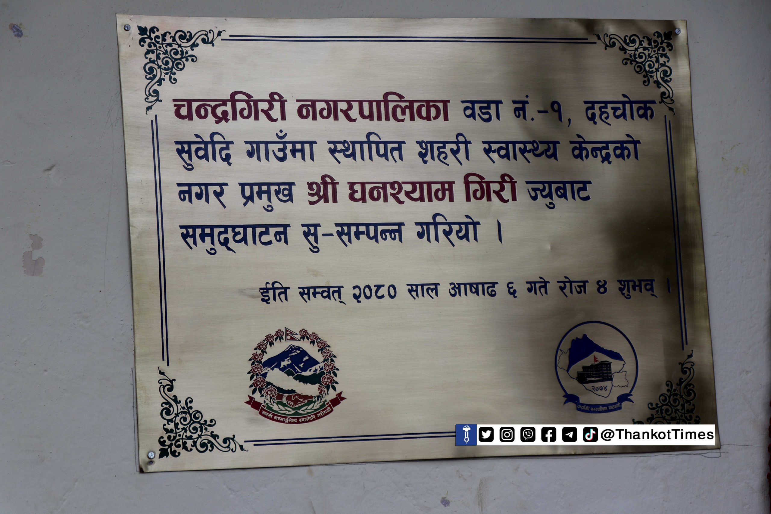 चन्द्रागिरि नगरपालिका १ दहचोकको इन्द्रास्थानस्थित सुवेदी गाउँमा शहरी स्वास्थ्य केन्द्र स्थापना गरिएको छ ।